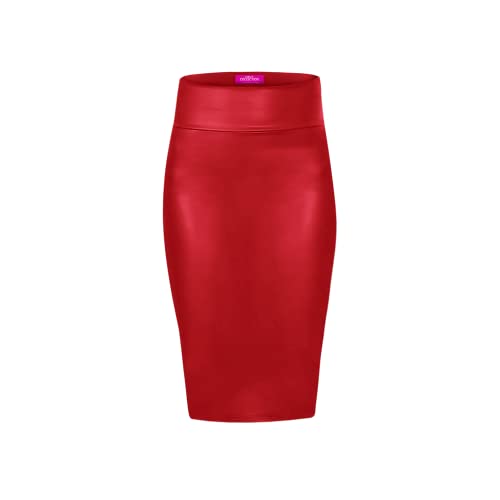 OrlyCollection Women's Elegant Slim Fit Midi Stretchy Pencil Skirt for Office Wear Proudly Made in USA (2X, Red Faux Leather)