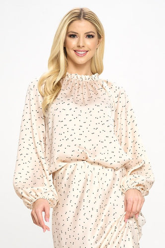 Made in USA Solid Satin Ruffle Mock Neck Top