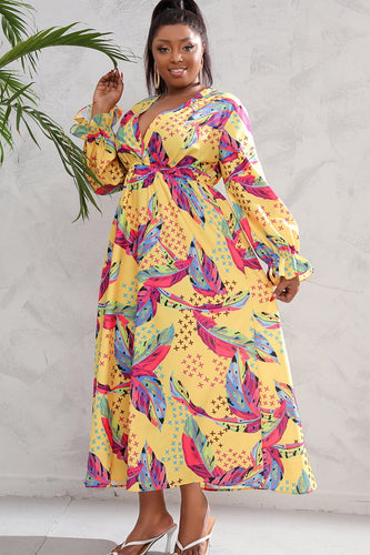 Fame Plus Size Printed Long Sleeve Dress