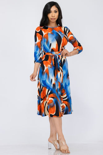 Printed V-Neck Ruffled Cap Sleeve Maxi Dress