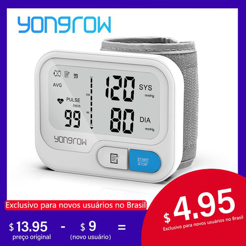 Yongrow Automatic Digital Wrist Blood Pressure Monitor sphygmomanometer Tonometer Tensiometer Heart Rate Pulse Meter BP Monitor