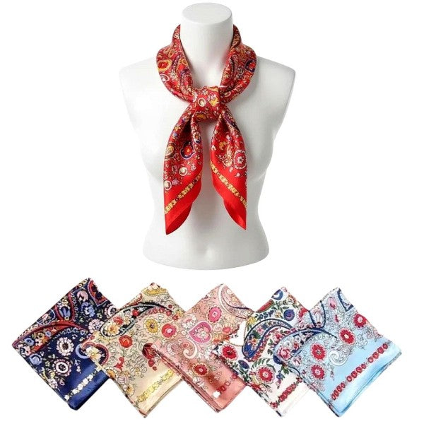 - Elevate your style with this 12-pack of silky feel amoeba paisley pattern square scarves