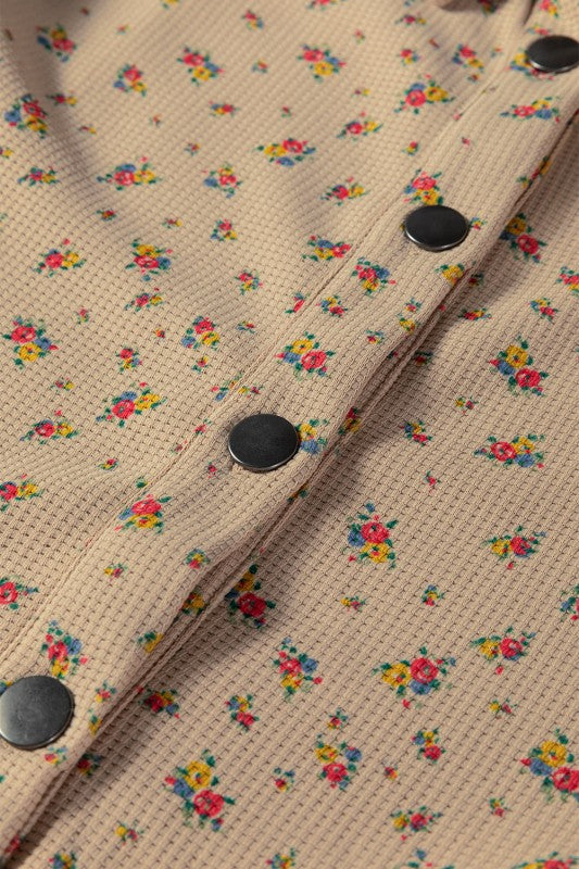 Floral Plaid Patchwork Ruffle Waffle Knit Shacket