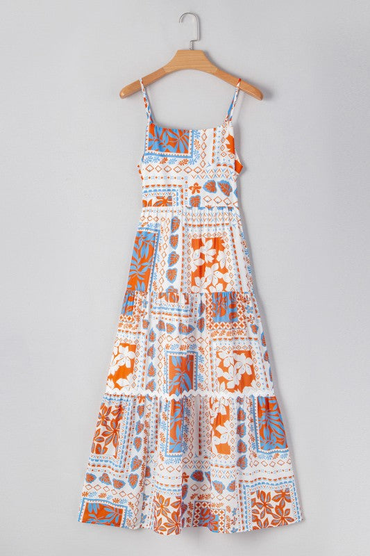 Floral Ricrac Trim Spaghetti Strap Maxi Dress