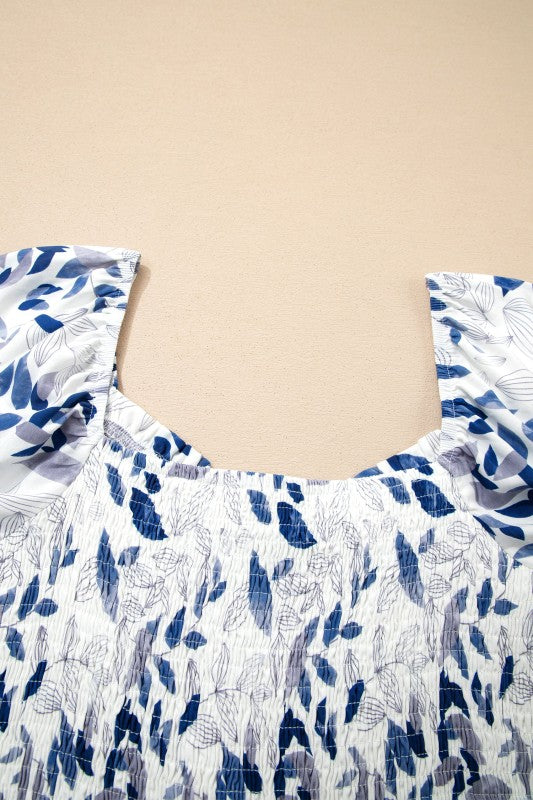 Floral Smocked Puff Sleeve Tiered Midi Dress