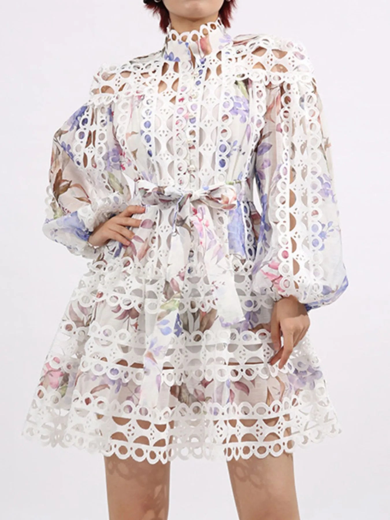 - Features:Tiered,Belted,Ruffled,Eyelet