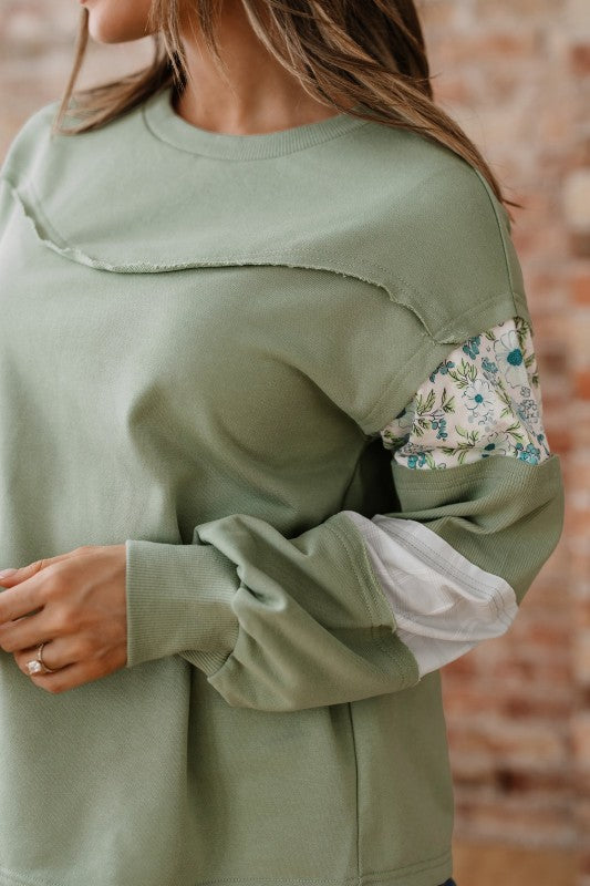Keep it simple in Oaklee Relaxed French Terry Top—an easy favorite you’ll keep in regular rotation. Features trendy floral plaid mixed sleeves for a casual look. French terry fabric offers breathable comfort for everyday wear. Relaxed fit with raw edge detail adds a touch of vintage streetwear style. Ideal for layering with denim for effortless outfit combos. Material: 65%Polyester+35%Cotton.