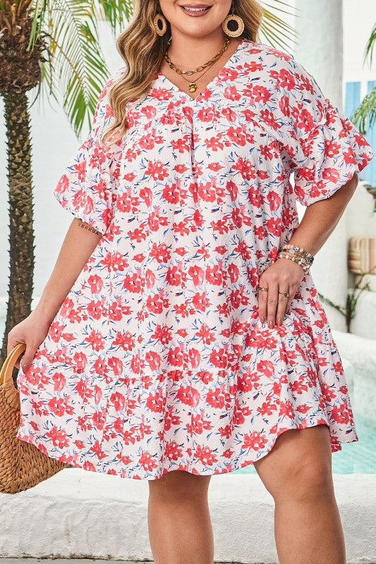 Twirl into elegance with this stunning dress that celebrates your curves in all the right ways. The delicate print brings a romantic flair, while ruffled sleeves add a playful touch of sophistication. A flattering neckline creates endless styling possibilities, whether you're dressing up or keeping it casual. Crafted from lightweight, breathable fabric, this dress feels as amazing as it looks—comfortable enough for all-day wear without sacrificing style. Perfect for any occasion that calls for effortless femininity. 100% Polyester