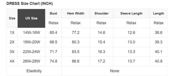 Plus Size Info: See size chart for approximate measurements