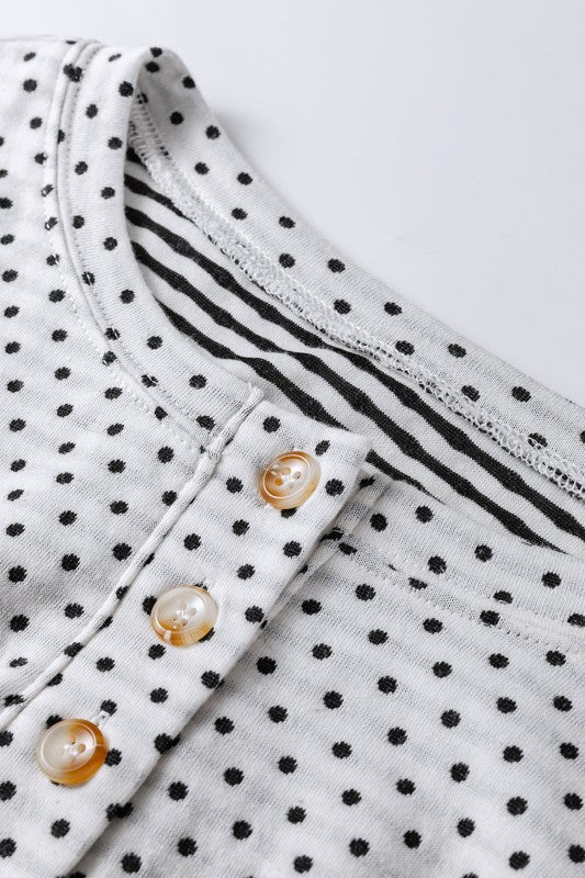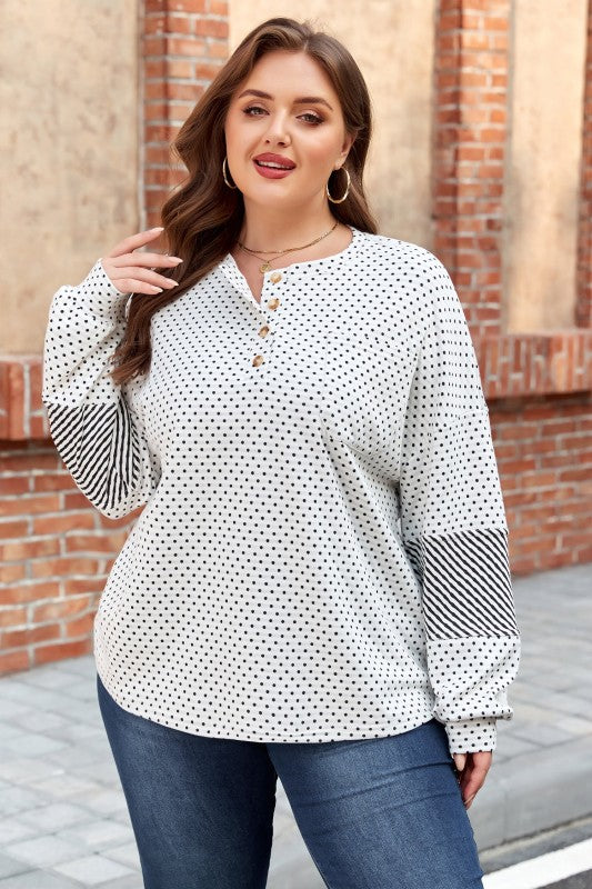 Plus Size Polka Dot Stripe Patchwork Henley Top