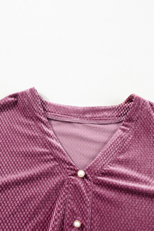 Elevate your wardrobe with this mini dress, designed for style and comfort. Its flattering plus-size fit ensures confidence, while the textured fabric adds depth and sophistication. The chic V-neckline is accented with button detailing, creating a refined look perfect for any occasion. Layered tiers offer a graceful silhouette that moves effortlessly with you.