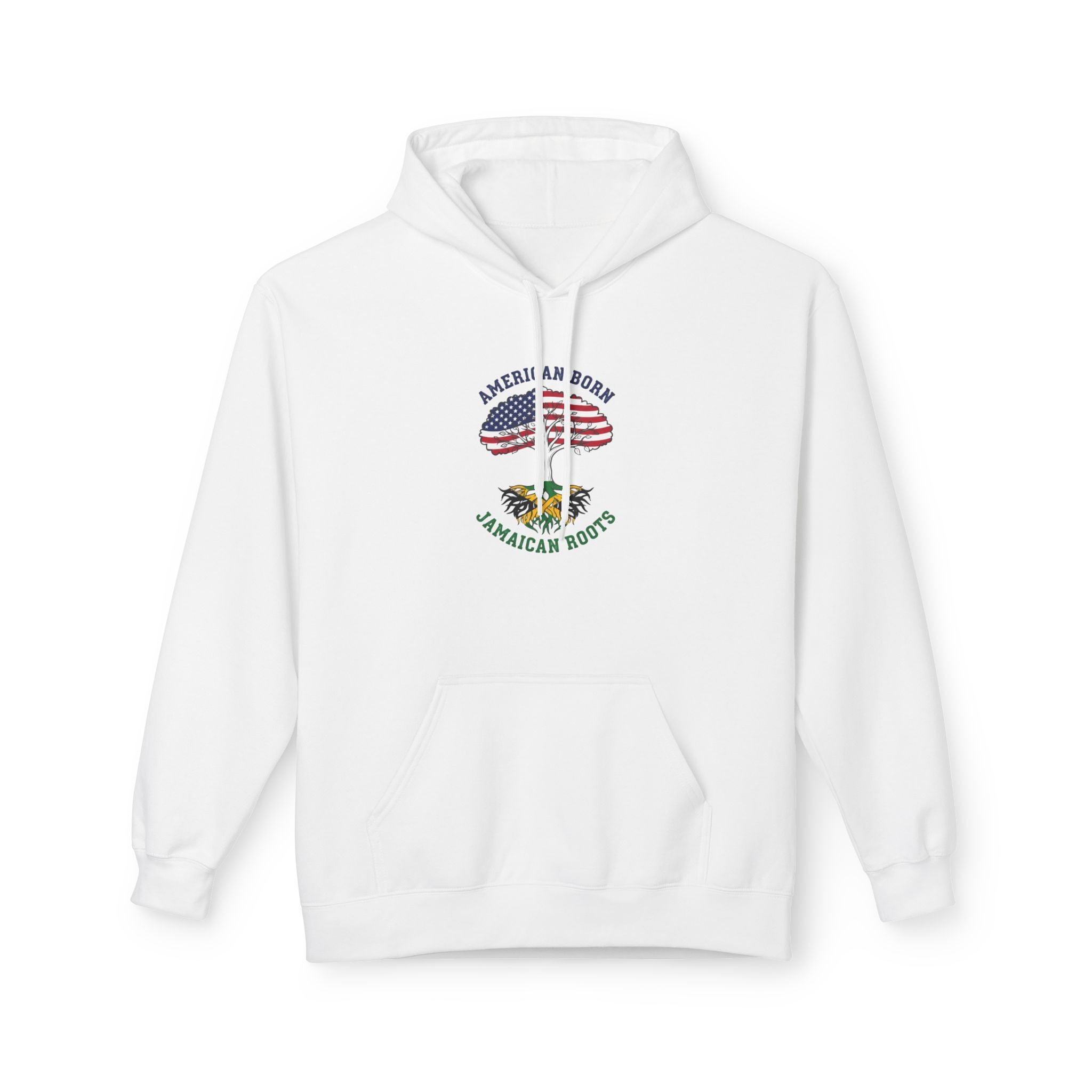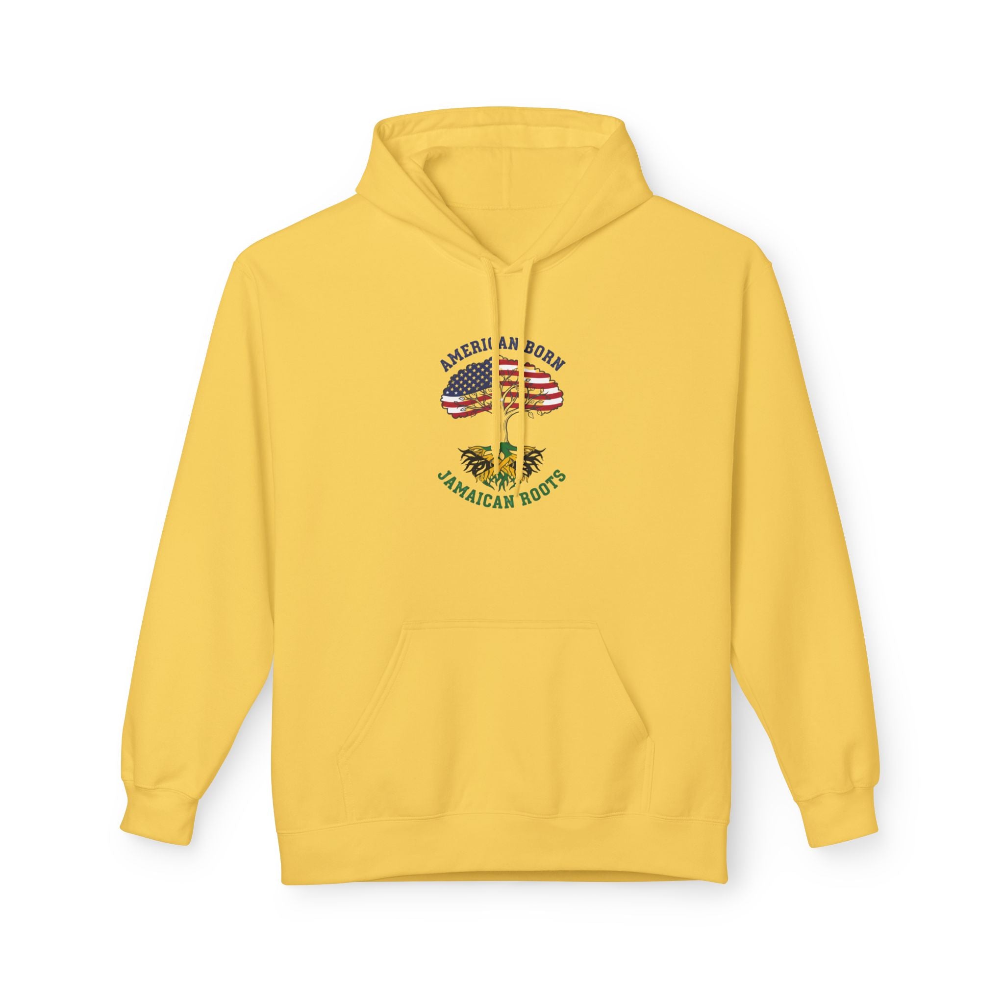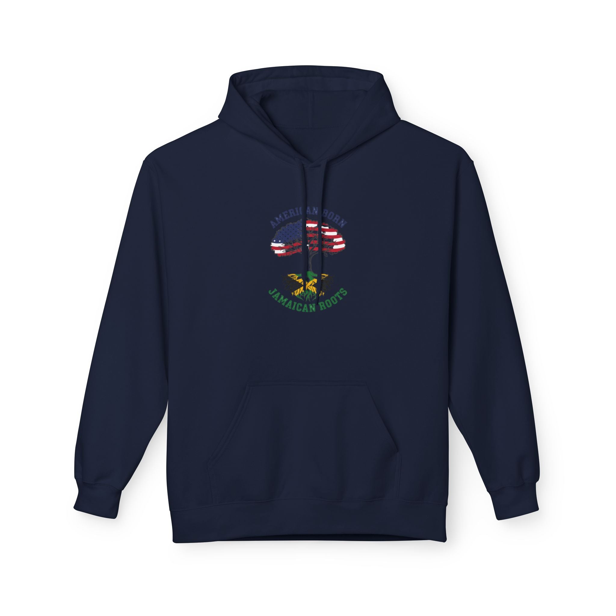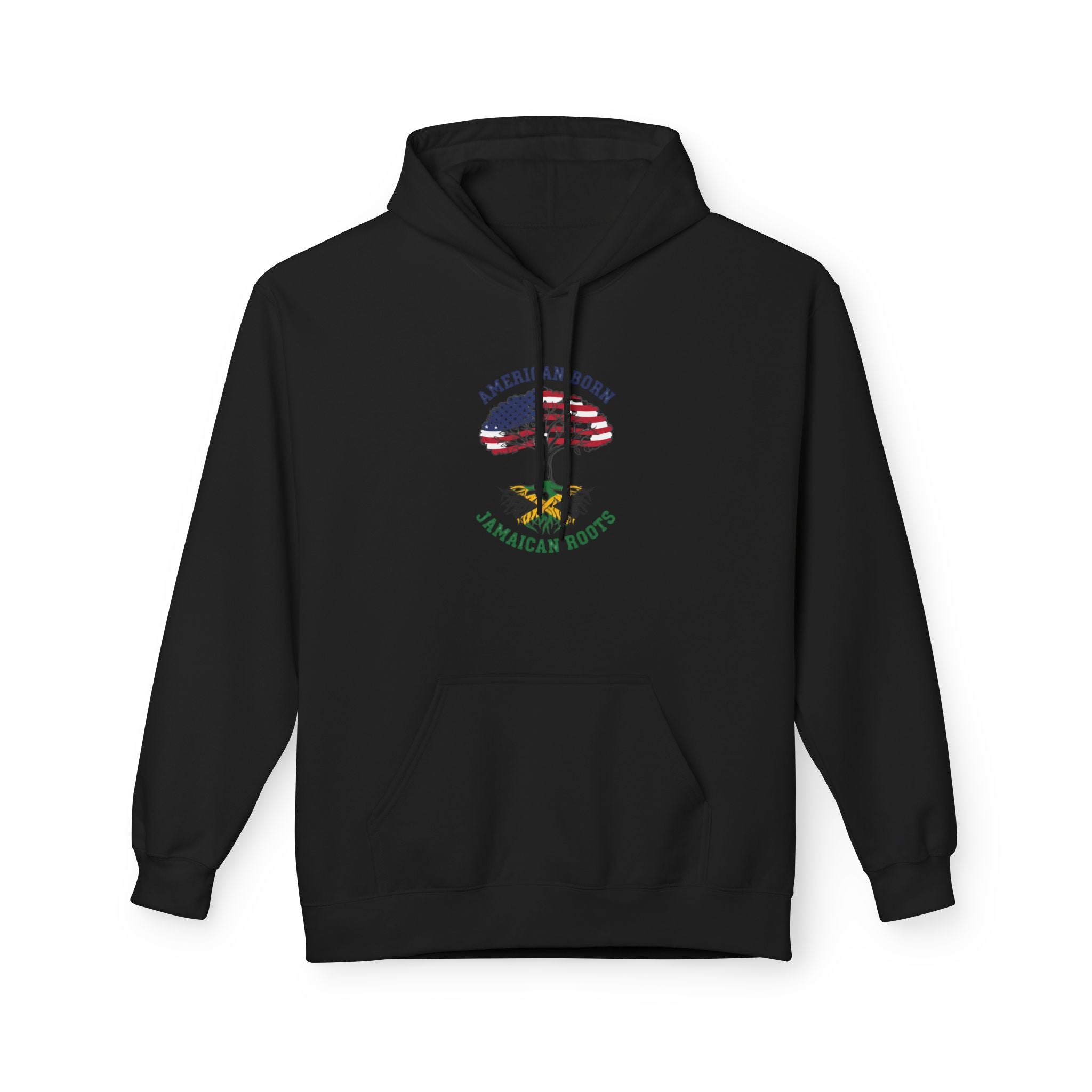 This fleece hoodie carries a relaxed, lived-in vibe that celebrates blended roots and easy weekends. A small, centered chest graphic shows a playful mash-up of American and Jamaican motifs — hand-drawn stripes, tropical florals and a sunny color palette — sitting above the pouch pocket. The medium-heavy fabric feels substantial without being stiff; dropped shoulders and a classic fit let you layer a tee or flannel underneath. The jersey-lined two-piece hood gives extra warmth and structure, while the tear-away label keeps the back of the neck comfortable. Thoughtfully made in OEKO-TEX certified fabric and produced in a facility partnered with fair-labor programs, it’s a hoodie you can wear with pride and little fuss.