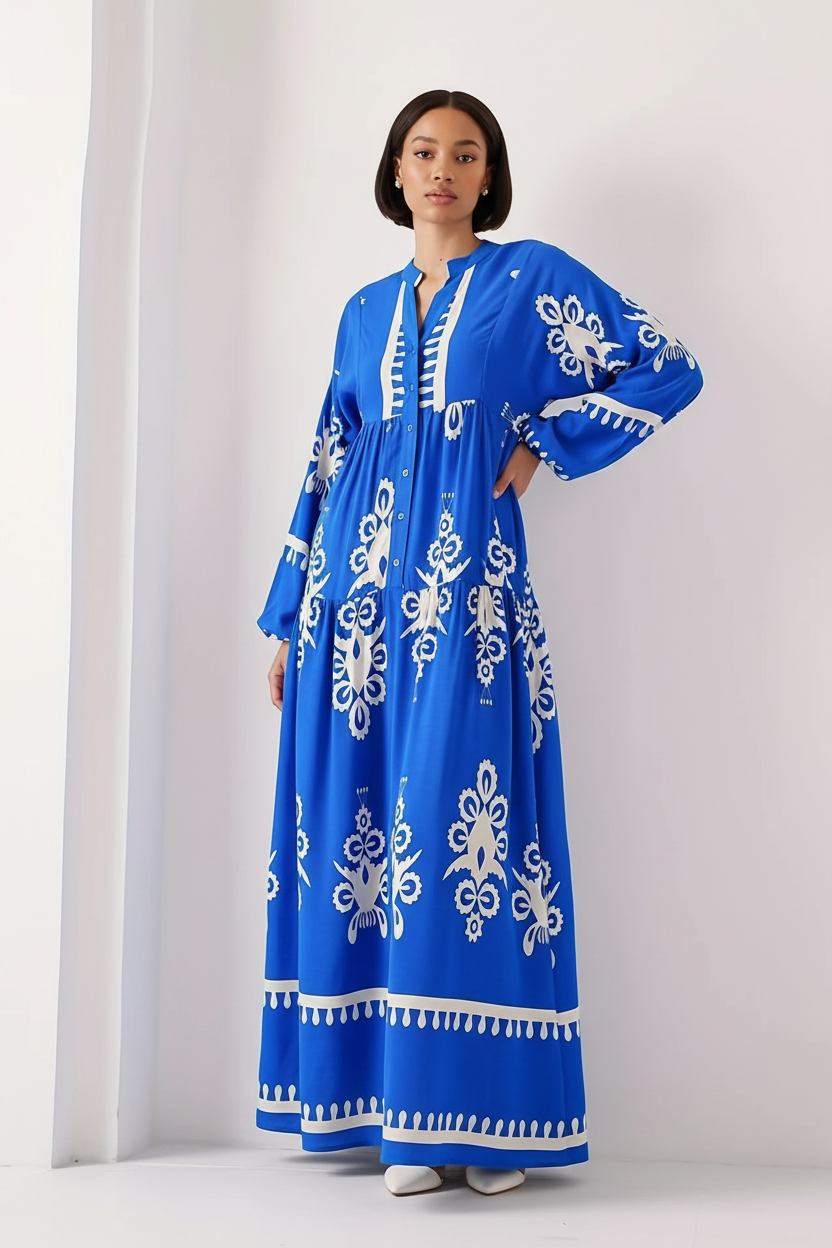 Bohemian Print Long Sleeve Maxi Dress
