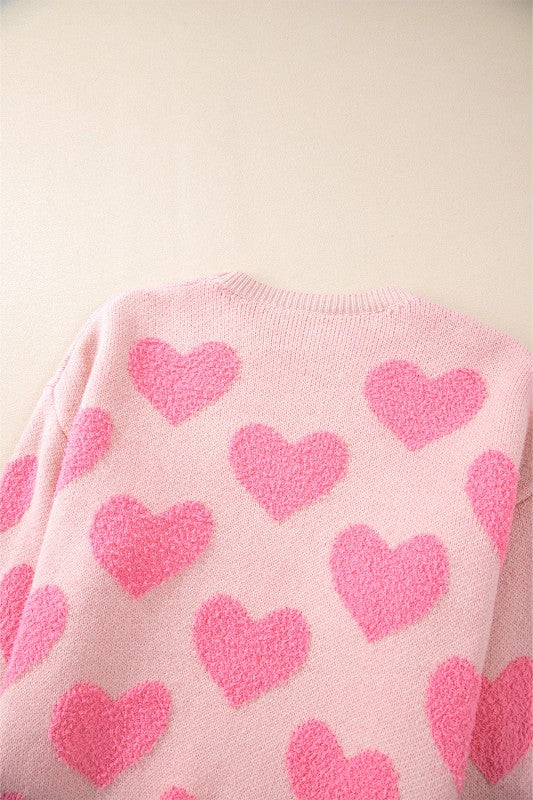 Slip into Cali Heart Jacquard Knit Sweater—soft, easy, and perfect for busy days on the go. Make a romantic and sweet statement with this sweater It features heart jacquard pattern all over that makes this sweater textured This women's sweater is very soft, warm and cozy It pairs elegantly with skirts while looks casual with jeans 's clothing on dear-lover are essentials for winter closets Material: 30%Polyester+42%Acrylic+28%Nylon.
