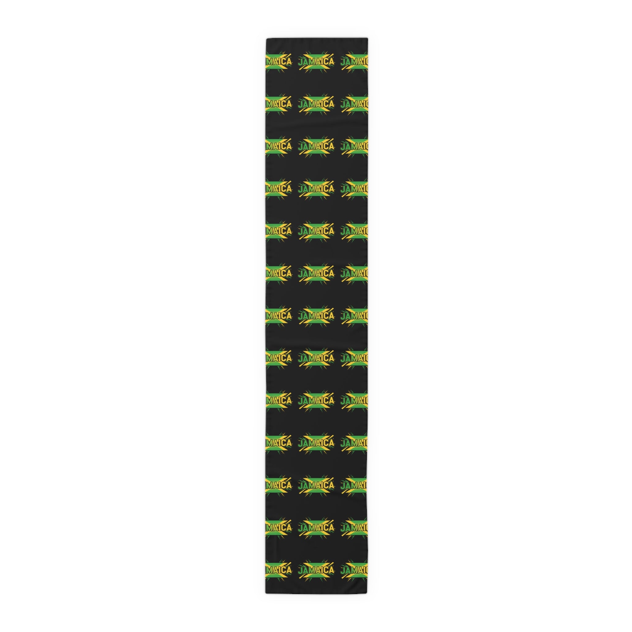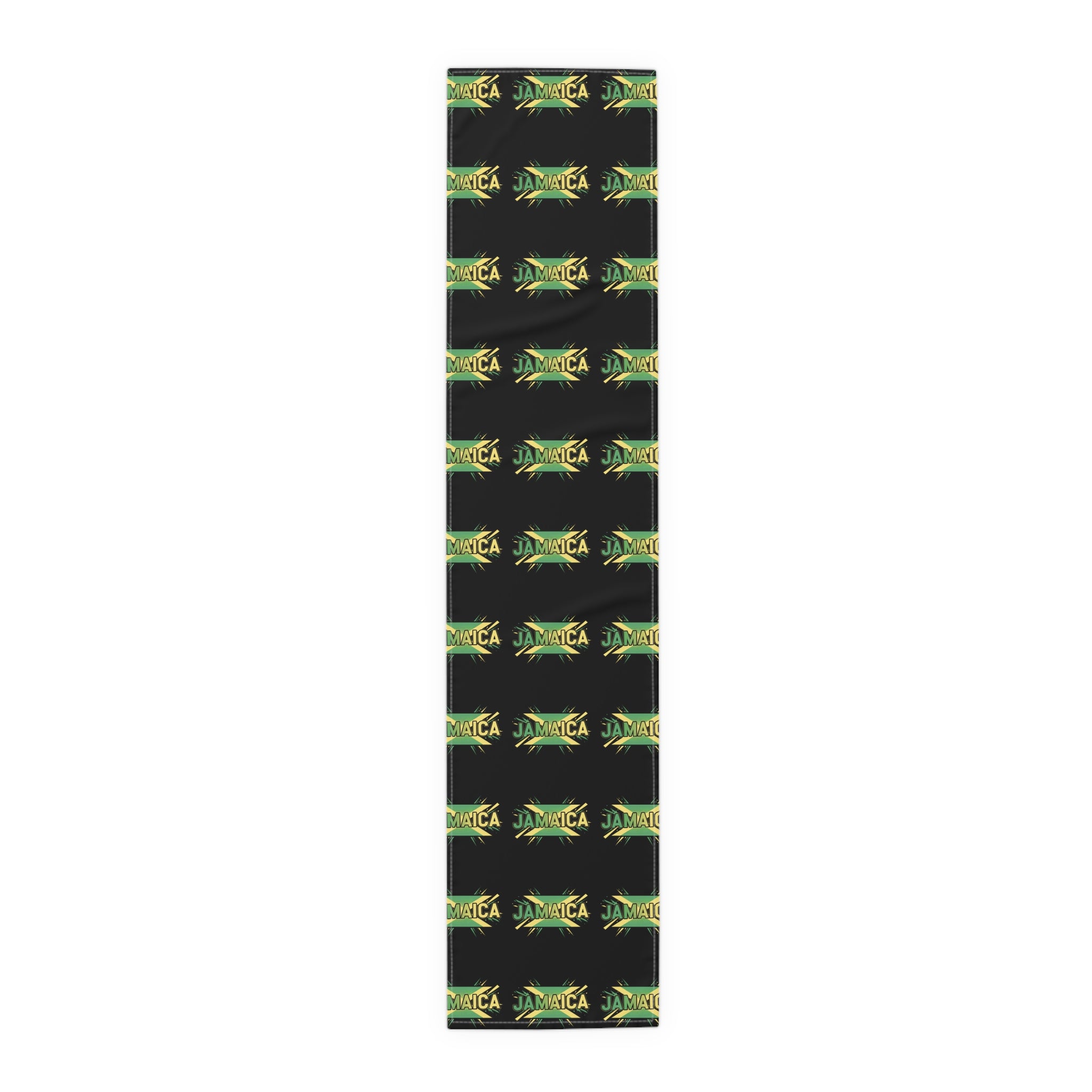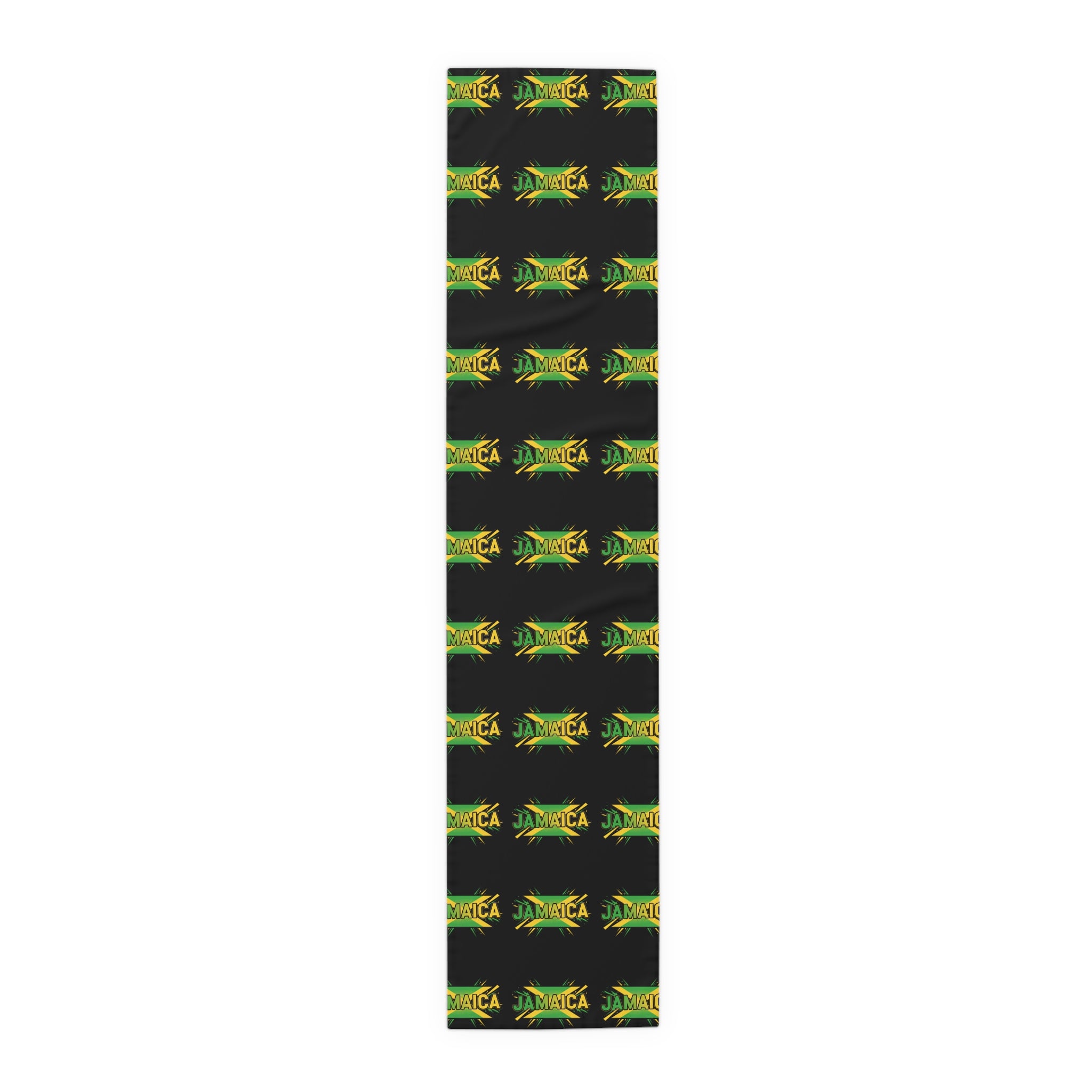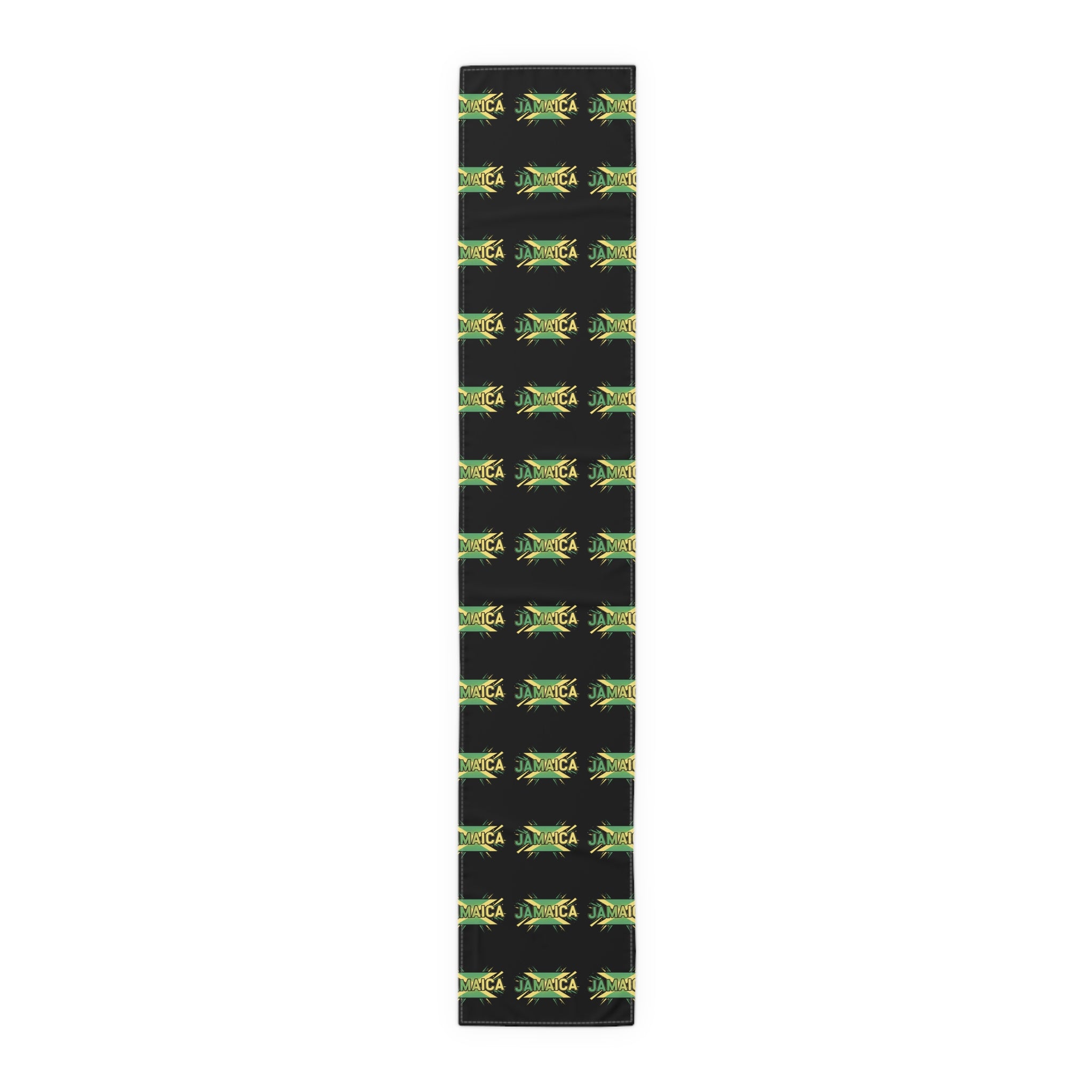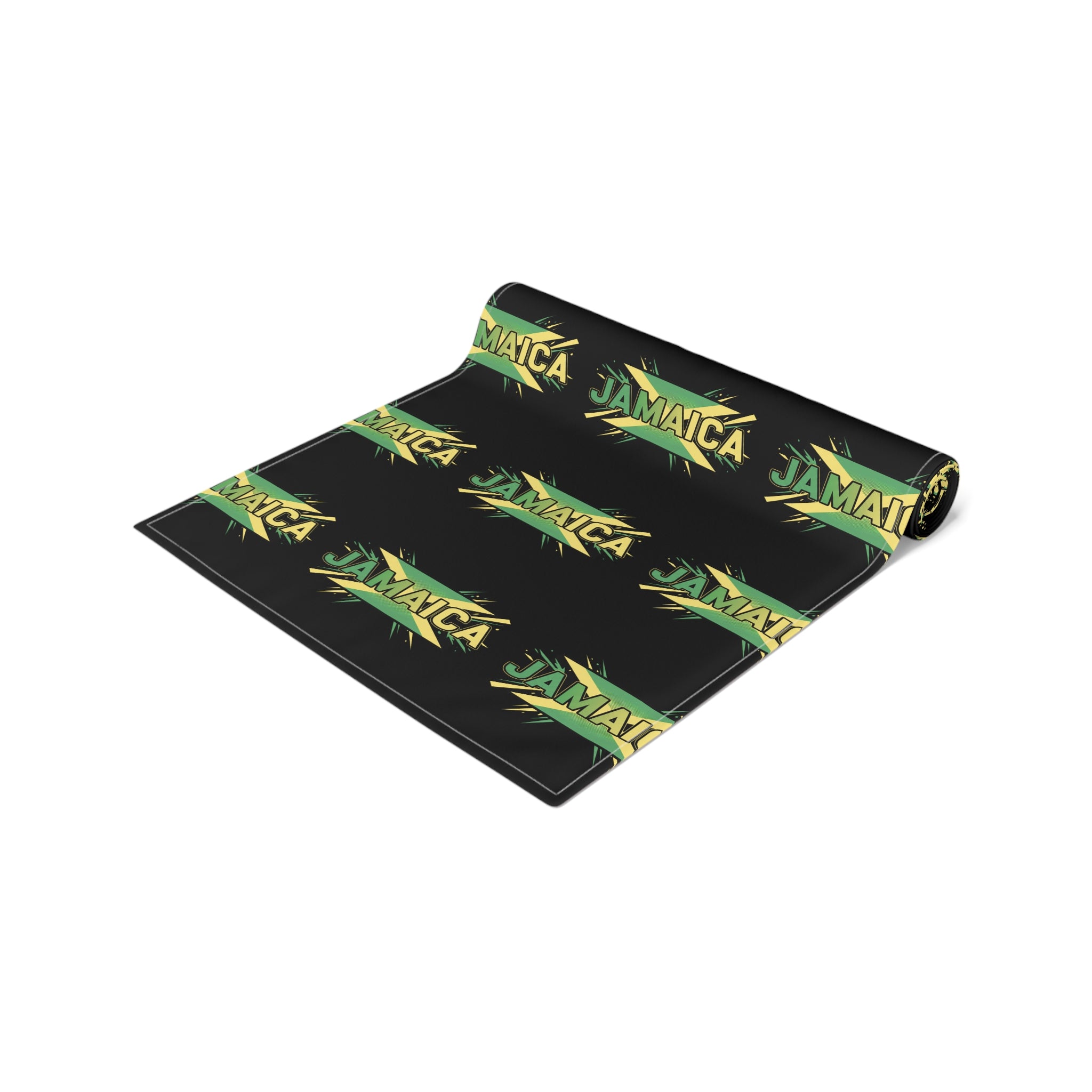 This vibrant table runner brings island energy to your dining table with bold green and gold lettering against a deep black field. It lays long and confident down the center of a table, turning everyday meals into a bright, celebratory moment. Choose the quick-drying polyester for vivid, saturated color that resists wrinkles, or opt for the cotton twill for a softer, more traditional look with a subtle, muted print. Hemmed edges add structure and keep the runner looking neat through repeated use. Use it for casual gatherings, themed dinners, or when you want a touch of laid-back tropical spirit at your next get-together.