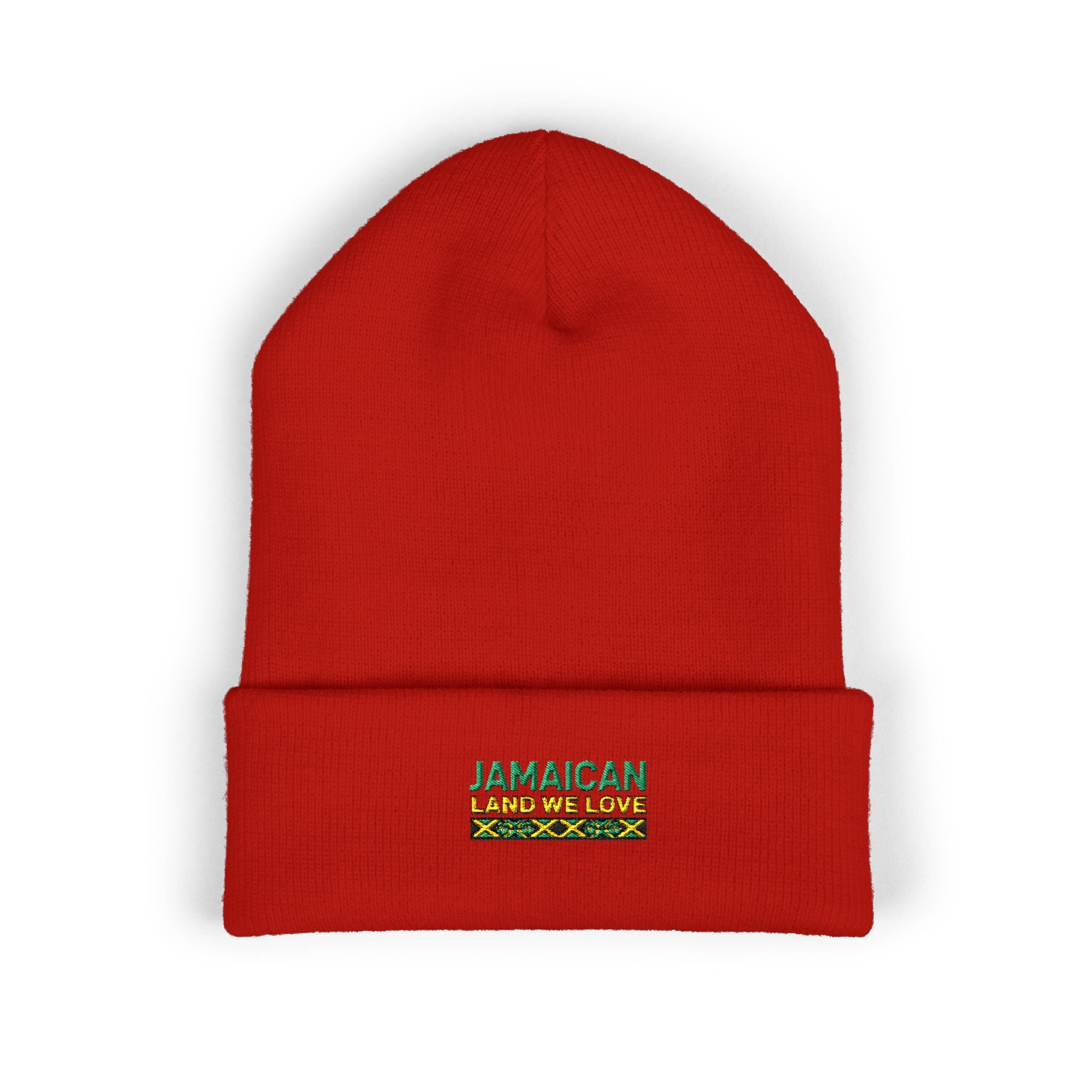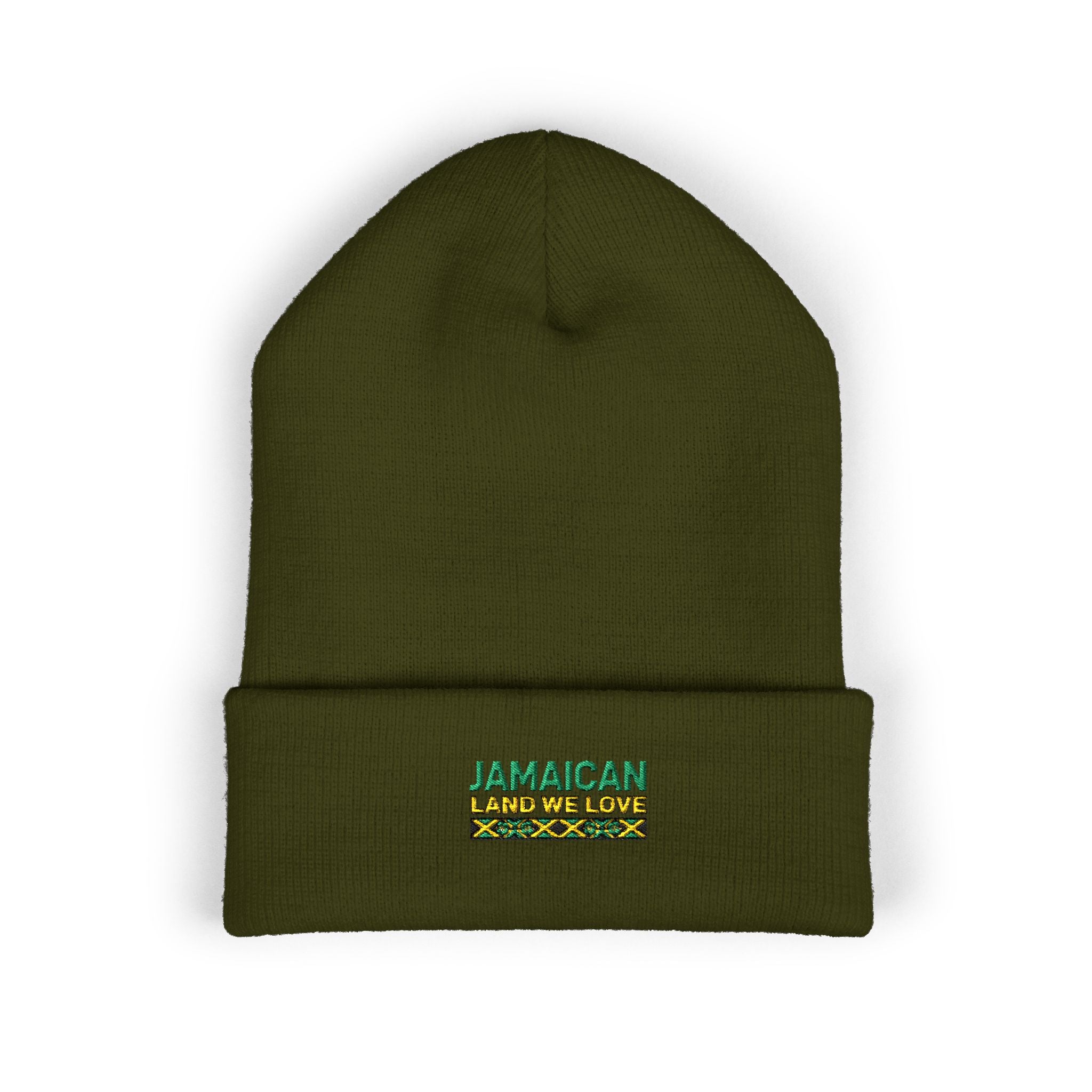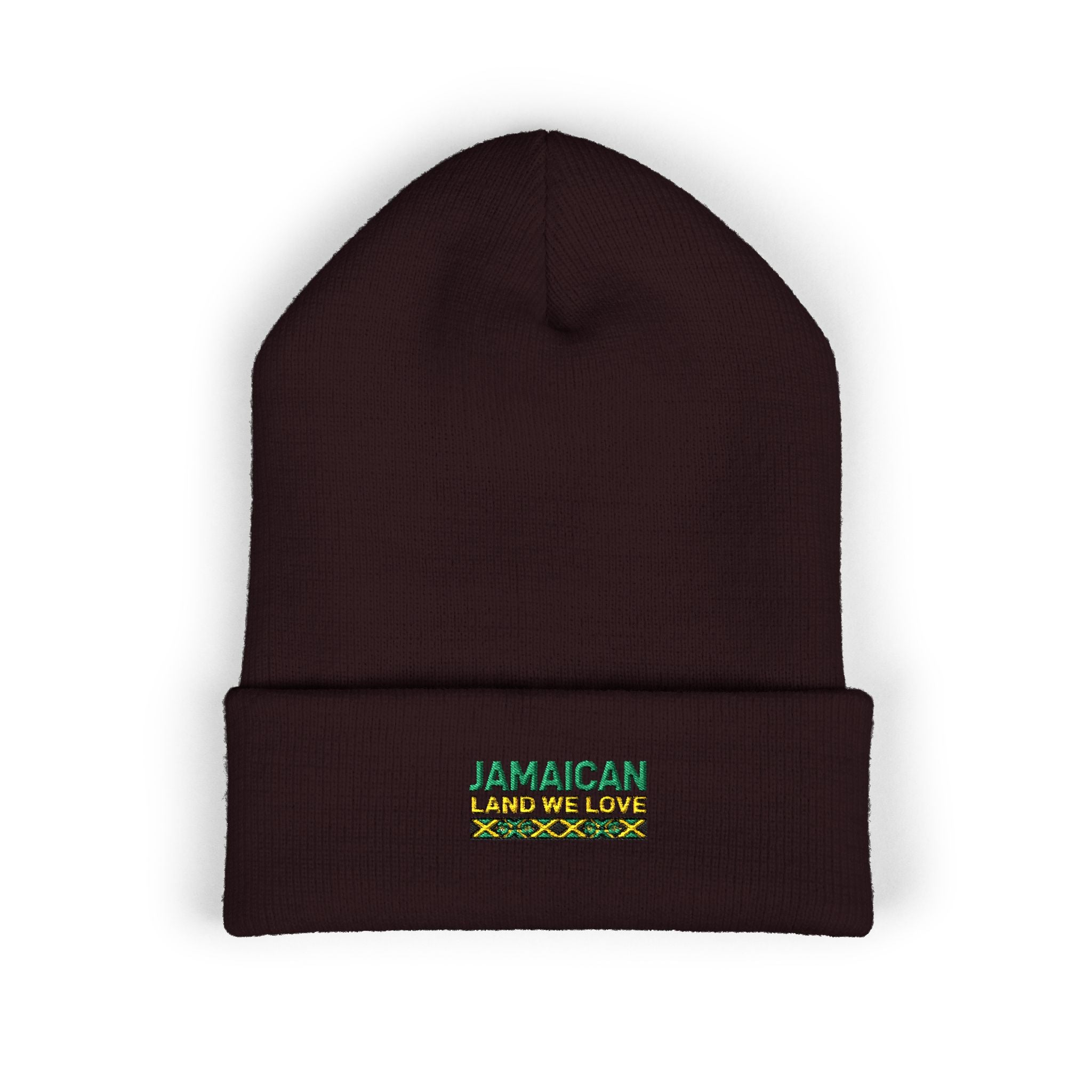 This soft, cuffed beanie brings quiet confidence to everyday wear. The low-profile embroidery says "Jamaican" with a small, colorful band beneath it — a subtle badge of pride that reads like a shared nod between friends. The 12" cuff gives a structured silhouette that stays put on blustery days and rolls down for extra warmth. Lightweight but cozy, the hypoallergenic turbo acrylic knit keeps skin comfortable when you need it most: walking the city at dusk, slipping into a coffee shop after a surf, or layering under a winter coat for late-night gigs. It’s an understated piece that fits into routines, not just wardrobes — a simple accent that carries meaning without shouting.