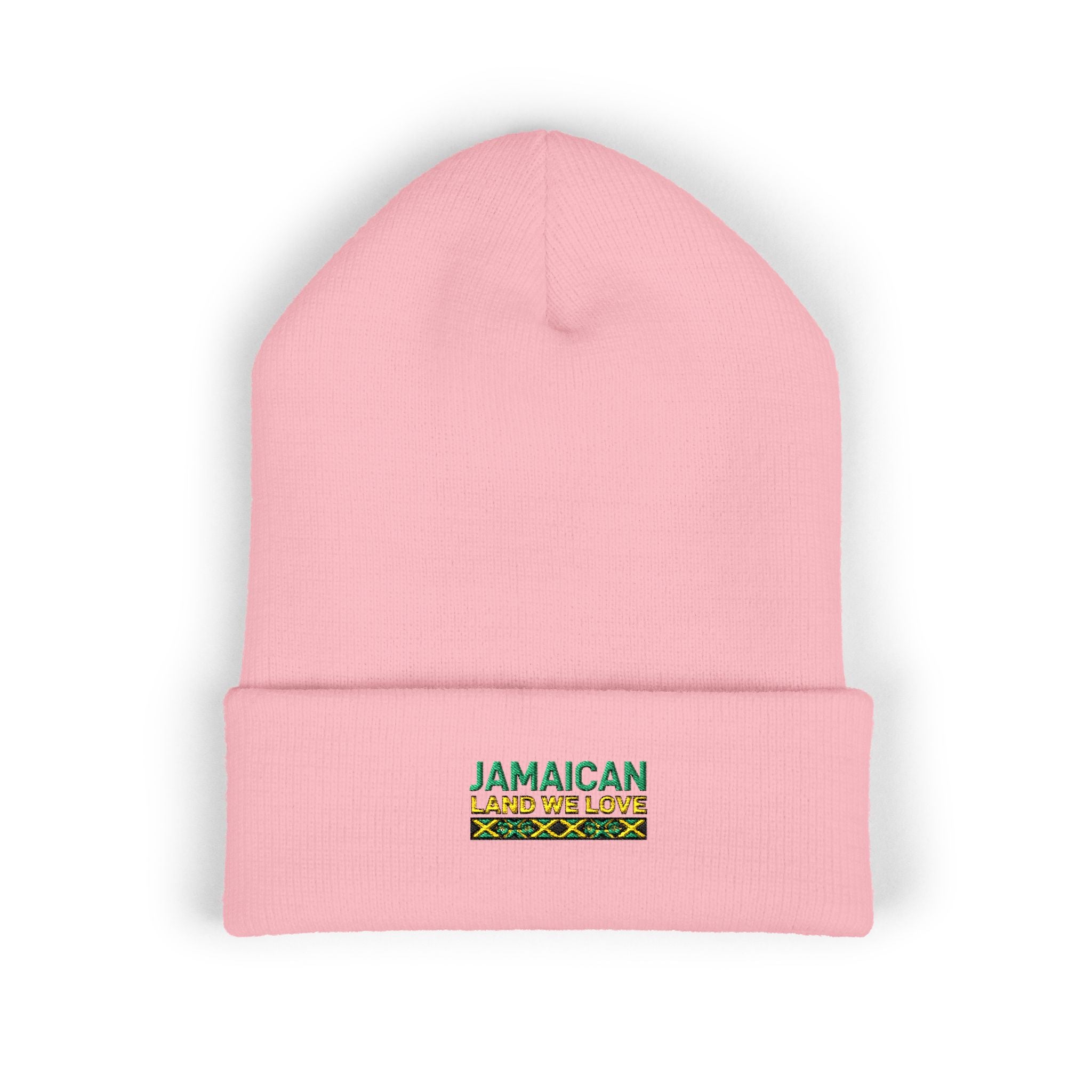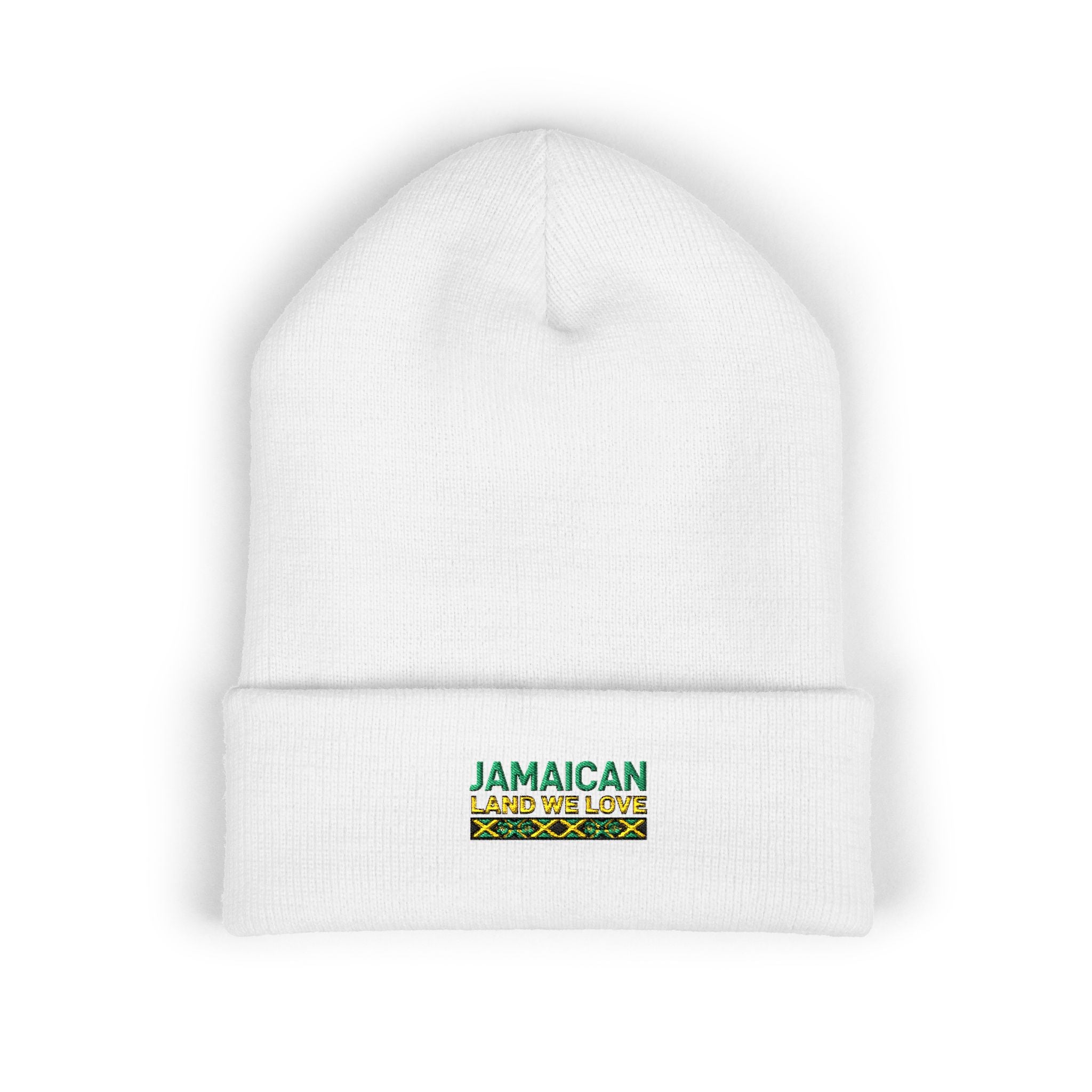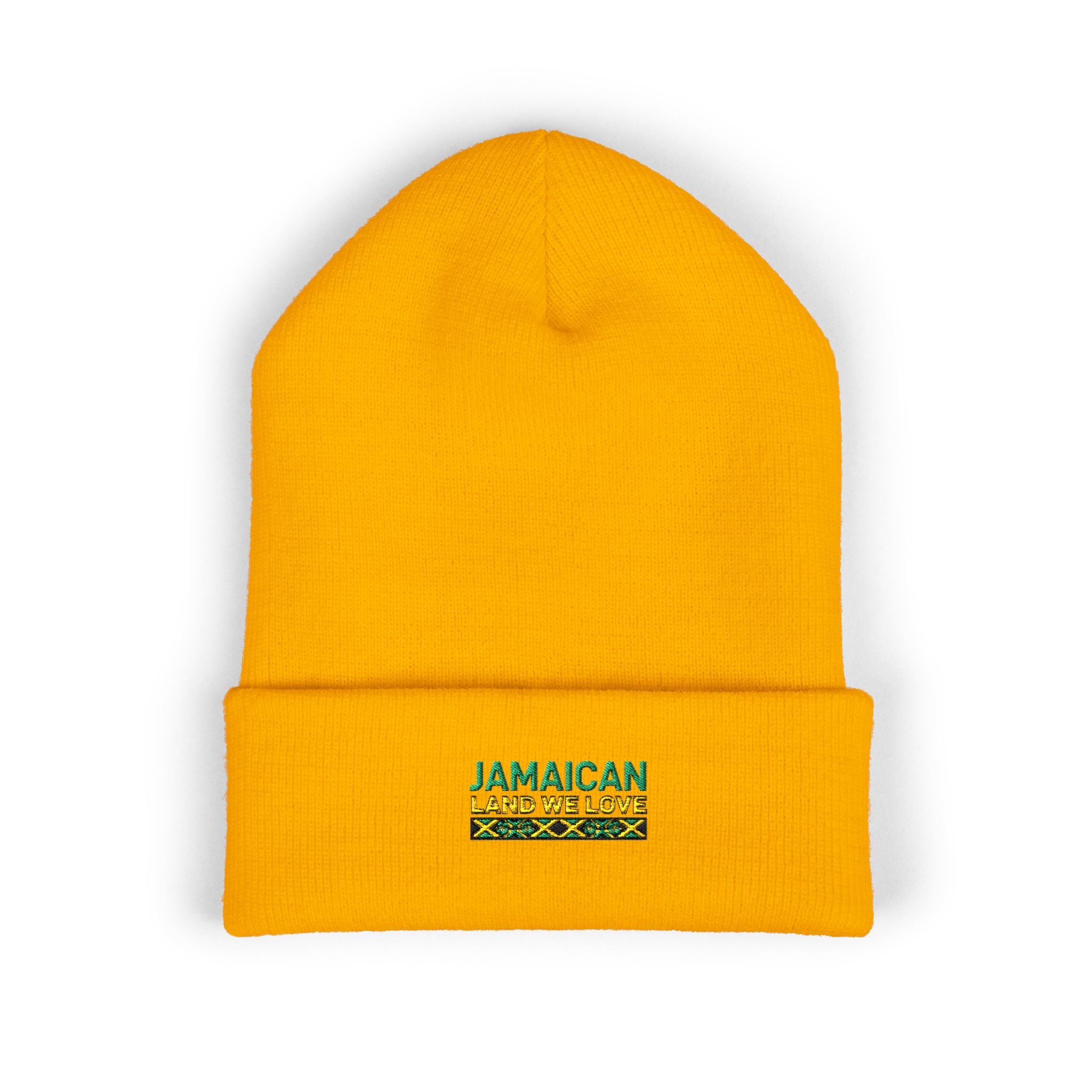 This soft, cuffed beanie brings quiet confidence to everyday wear. The low-profile embroidery says "Jamaican" with a small, colorful band beneath it — a subtle badge of pride that reads like a shared nod between friends. The 12" cuff gives a structured silhouette that stays put on blustery days and rolls down for extra warmth. Lightweight but cozy, the hypoallergenic turbo acrylic knit keeps skin comfortable when you need it most: walking the city at dusk, slipping into a coffee shop after a surf, or layering under a winter coat for late-night gigs. It’s an understated piece that fits into routines, not just wardrobes — a simple accent that carries meaning without shouting.