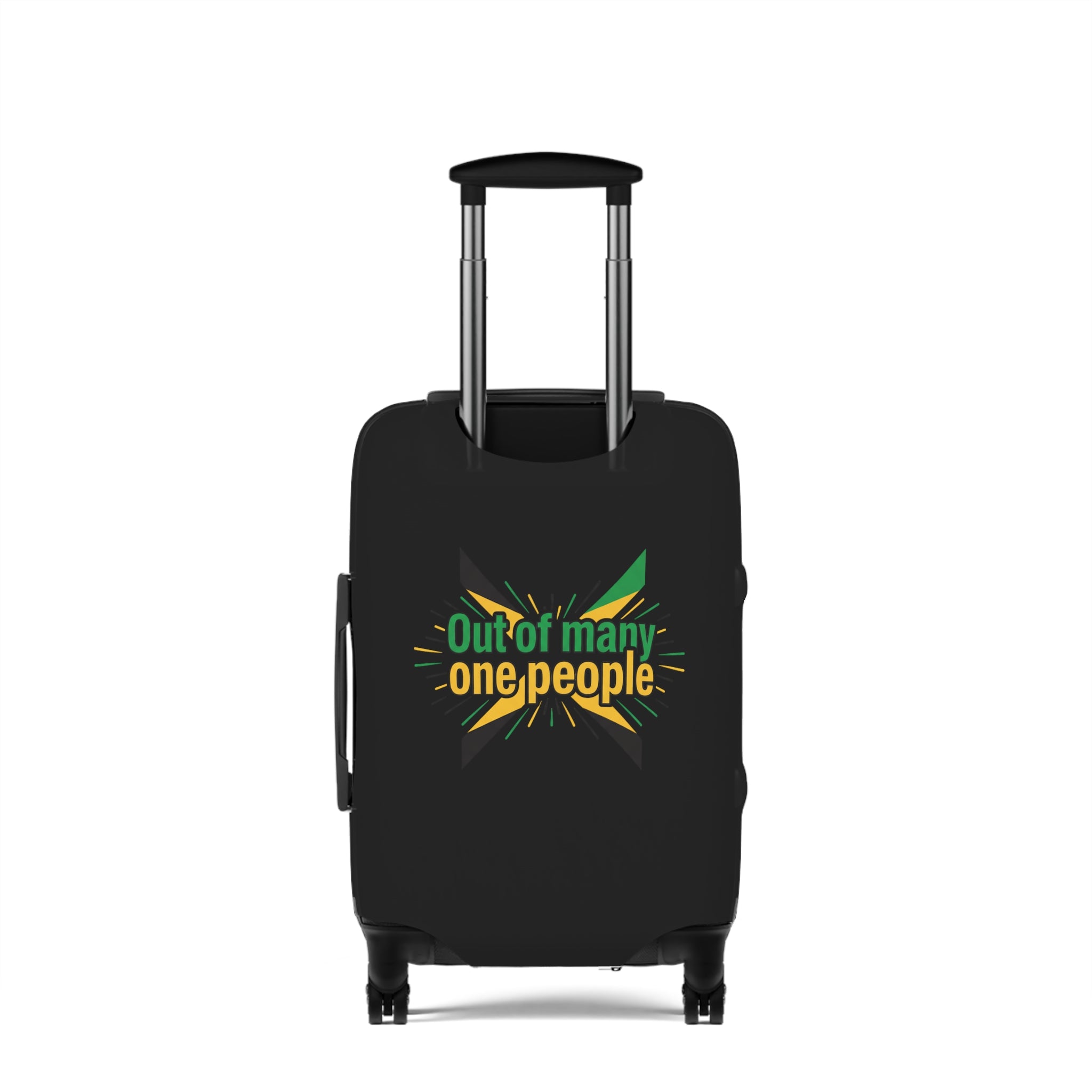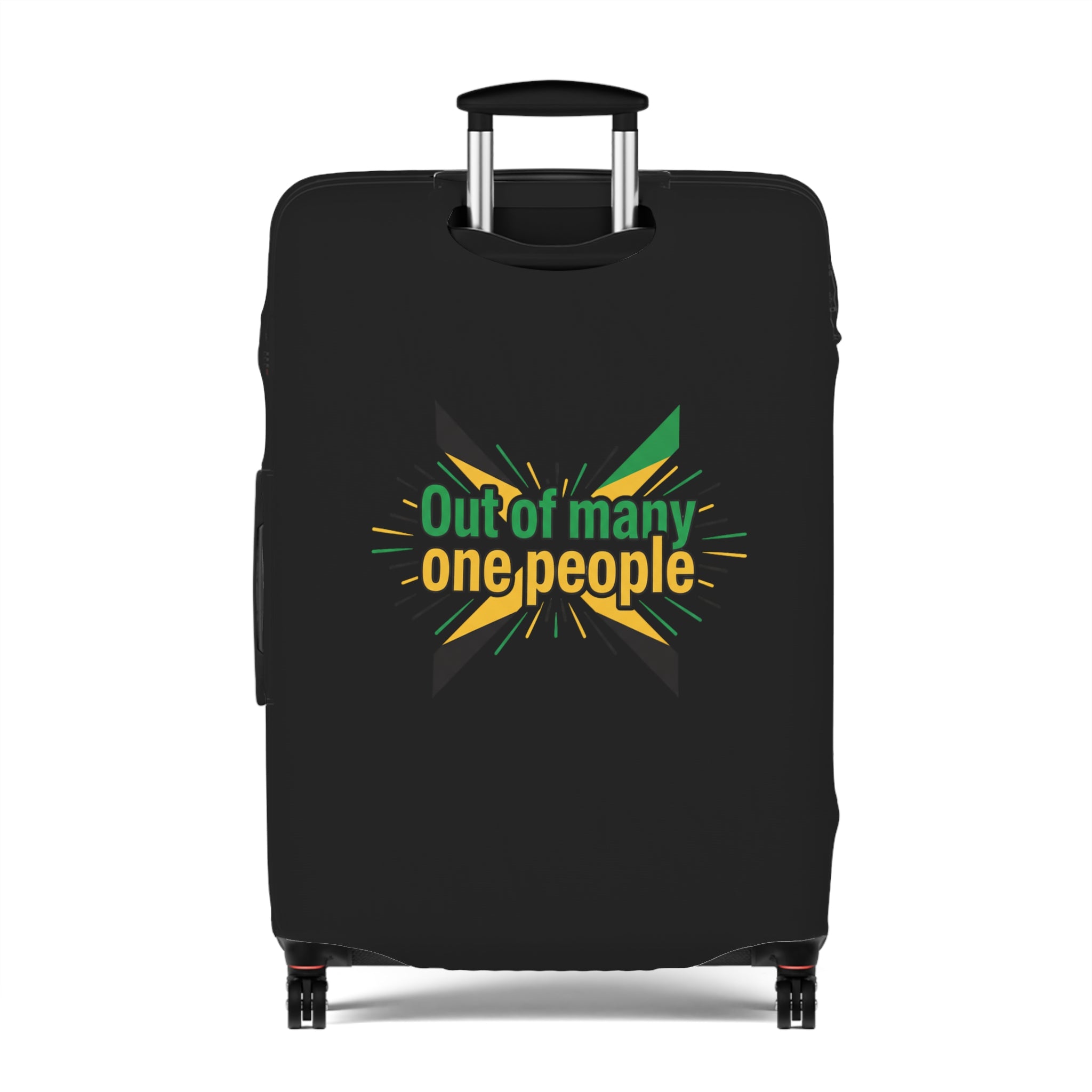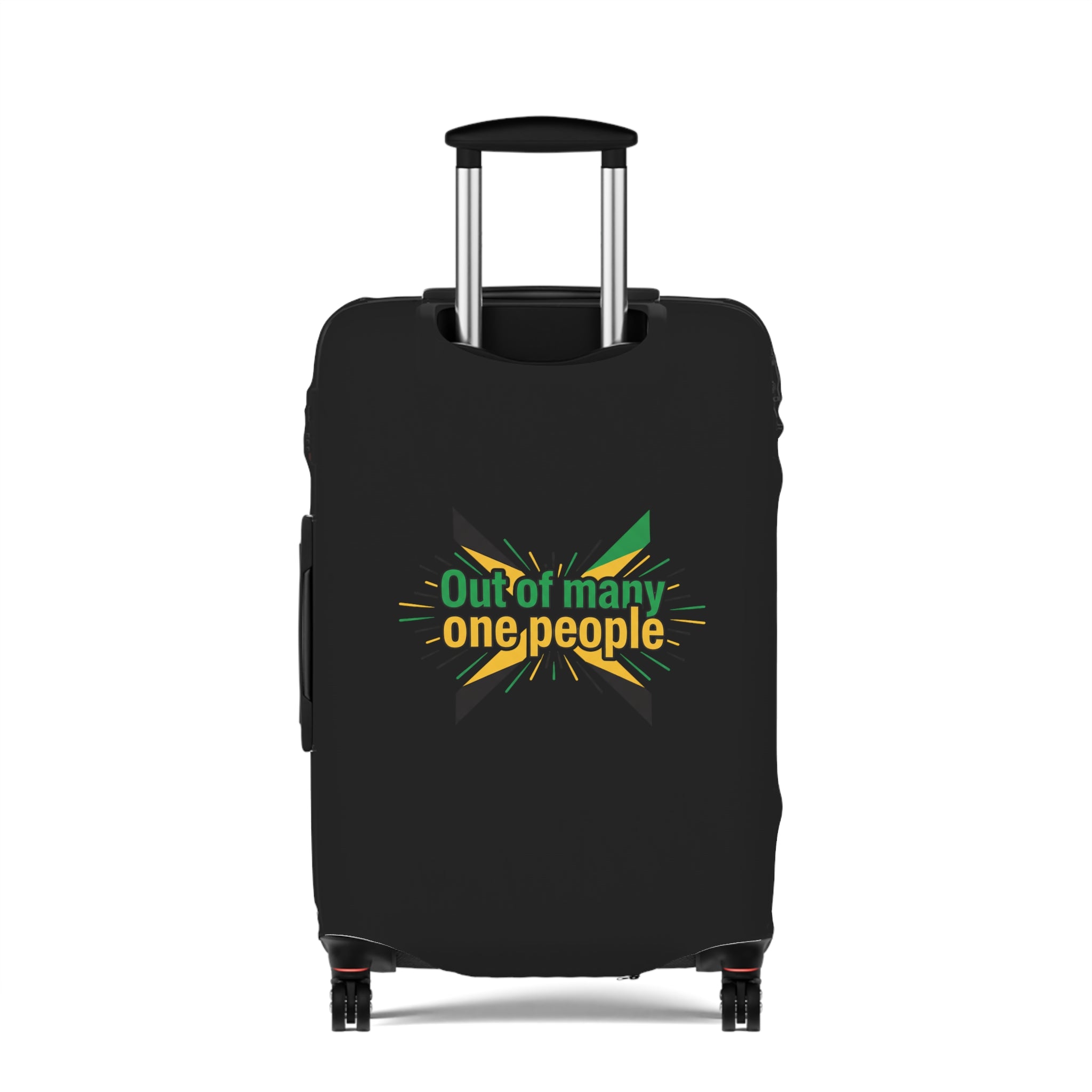 Carry the colors of the island wherever you roam. This stretchy luggage cover slips on easily and hugs your suitcase with a bold Jamaica graphic that pops against a deep black background. It keeps your bag cleaner, shields it from light scuffs and dust, and makes it unmistakable on crowded carousels. Lightweight and durable, the cover stretches over handles and zips closed at the base, giving quick access to top and side grips so you never sacrifice convenience for style. Bring a hint of sunlit beaches and island rhythm to every trip — a simple, cheerful way to travel with personality.