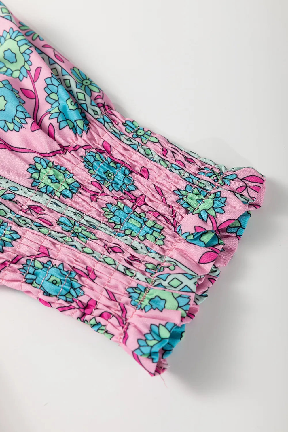 Printed Shirred Sleeve Buttoned Front Midi Dress with Sash