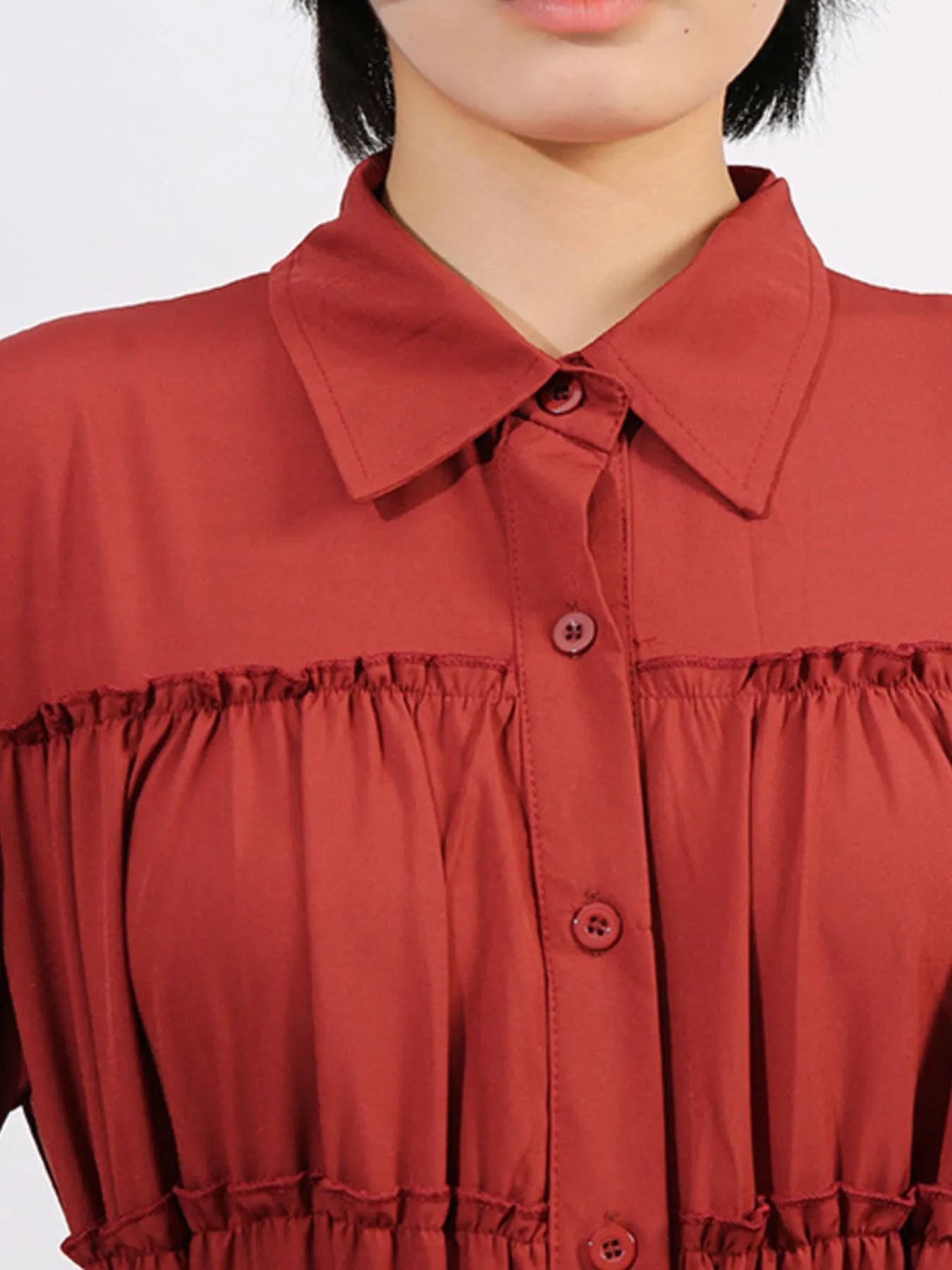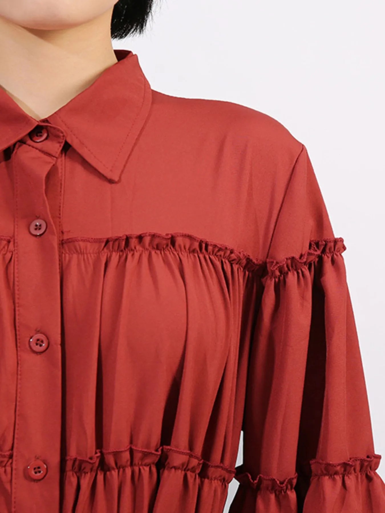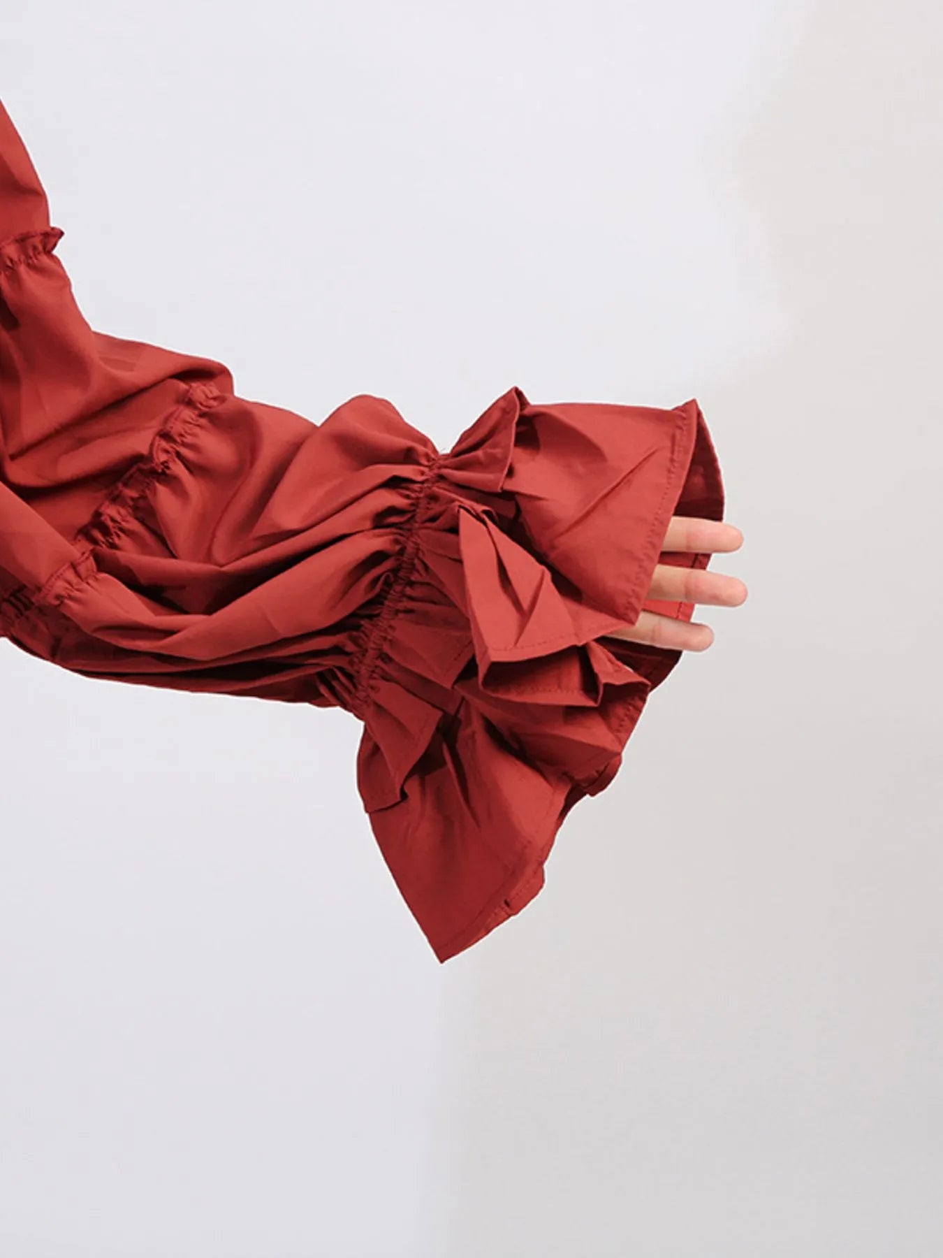 - Features:Tied,Frill,Ruffled