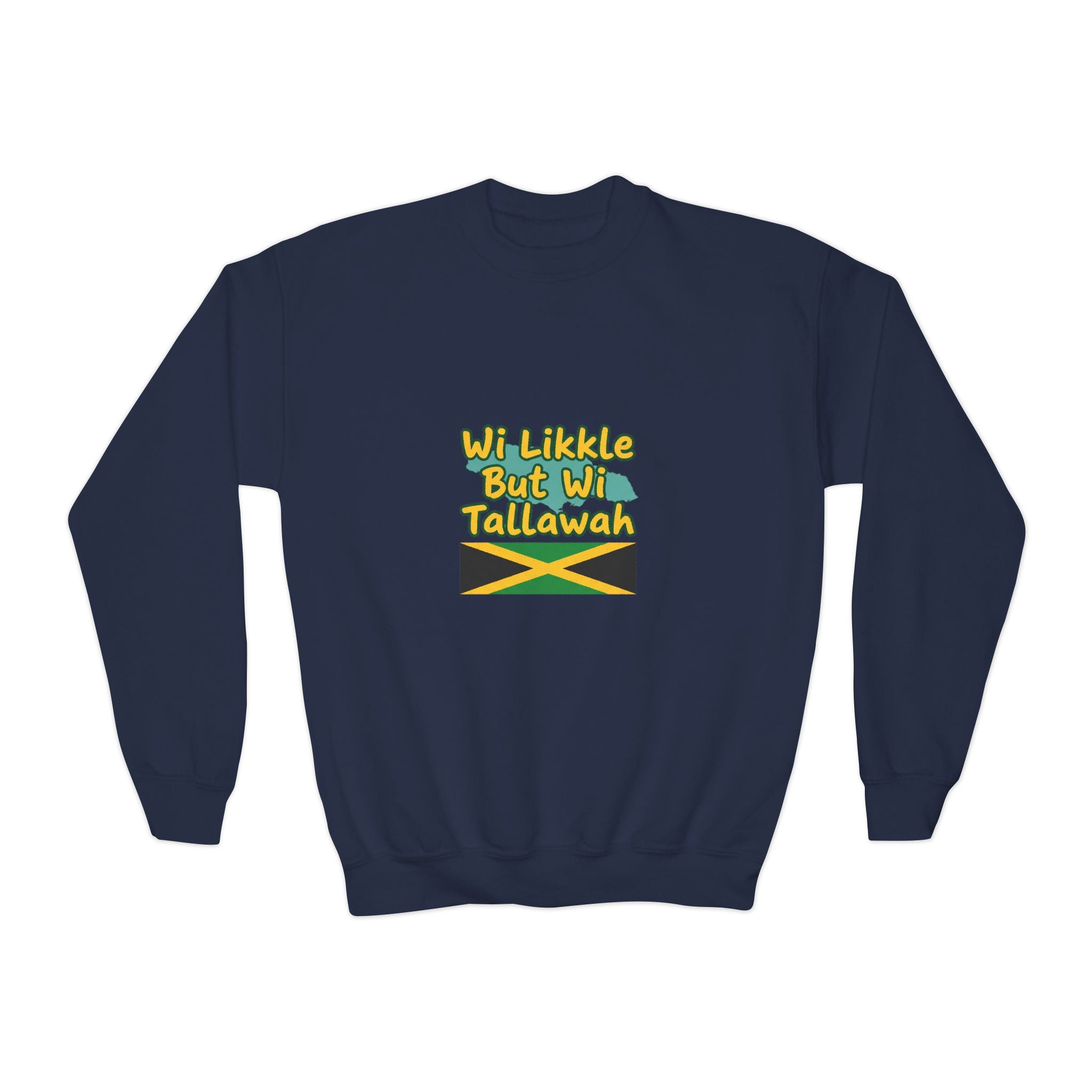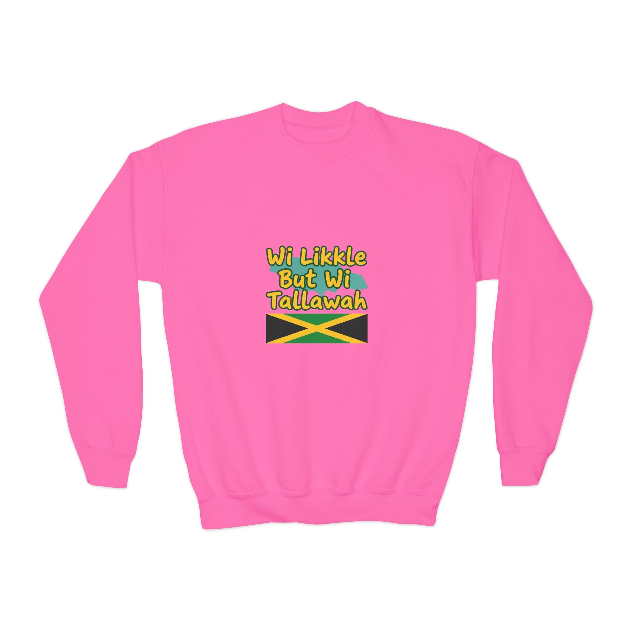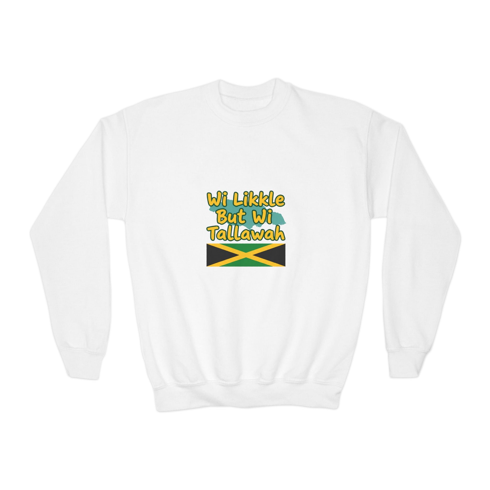 Soft, roomy, and built for play—this youth crewneck brings island pride to everyday adventures. The bright, hand-lettered message sits above a stylized Jamaican flag, lending a cheerful, sun-warmed look that stands out on the playground, at family gatherings, or during cultural celebrations. The medium-heavy knit feels substantial without being stiff; ribbed collar and cuffs hold their shape through washes and tumbles. Designed with a loose fit for easy layering over tees and hoodies, it moves with kids—running, climbing, and lounging—with comfort first. Available with optional left- or center-chest embroidery for a subtle, personalized touch.