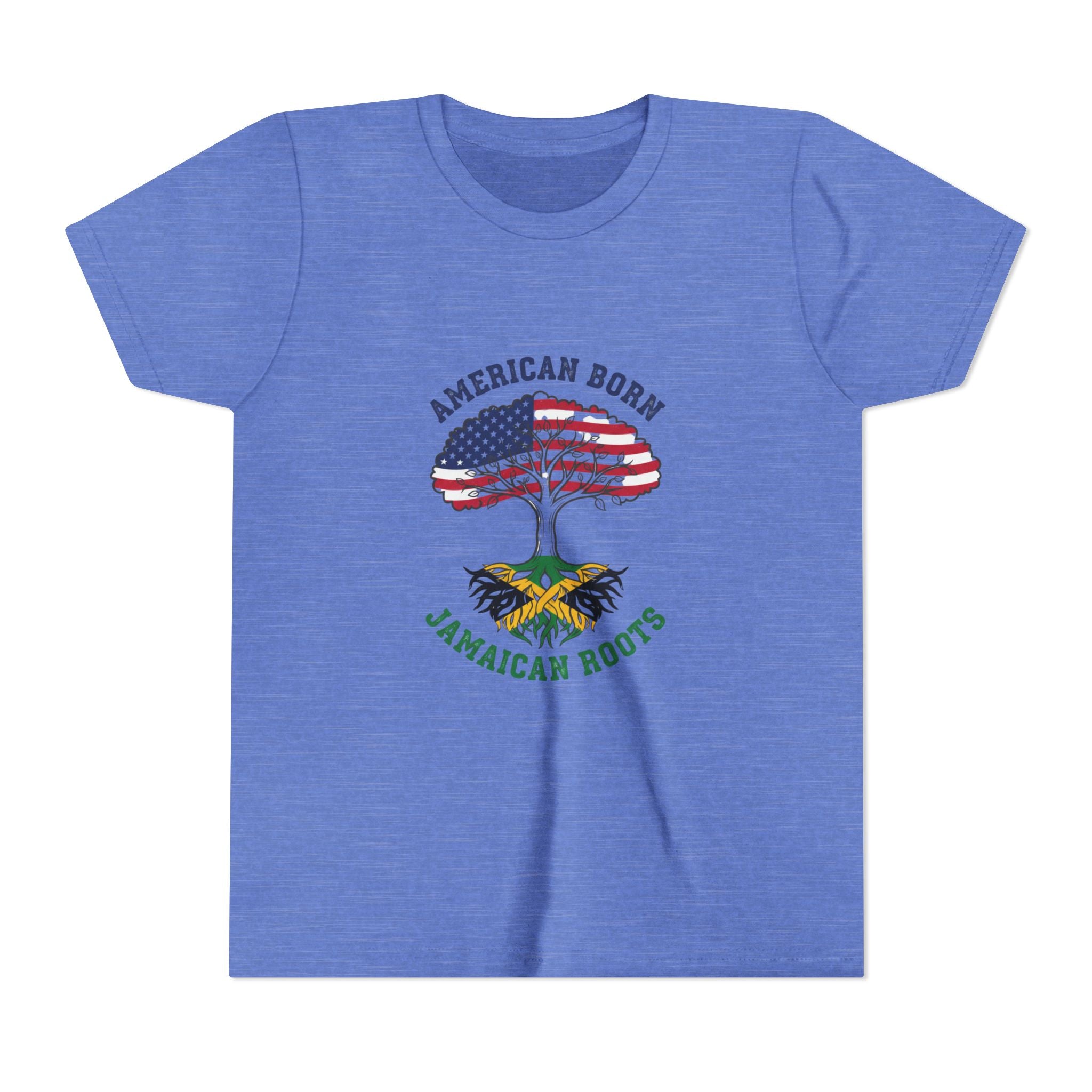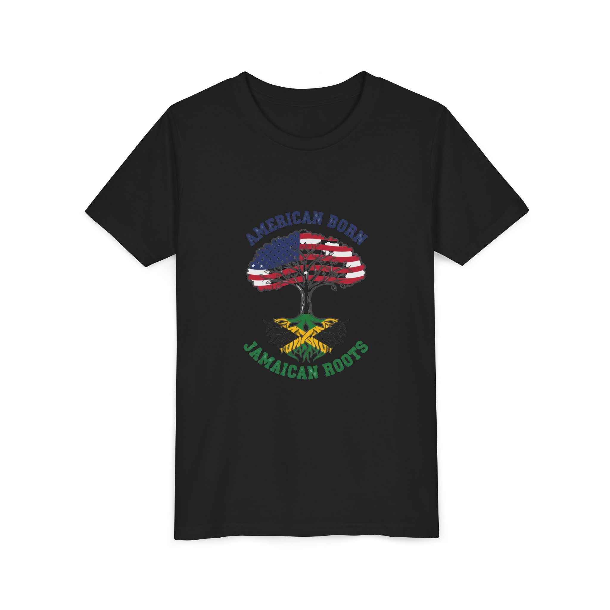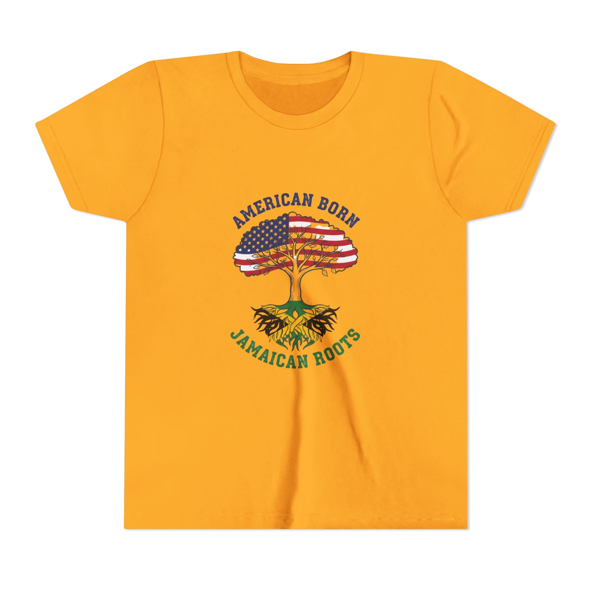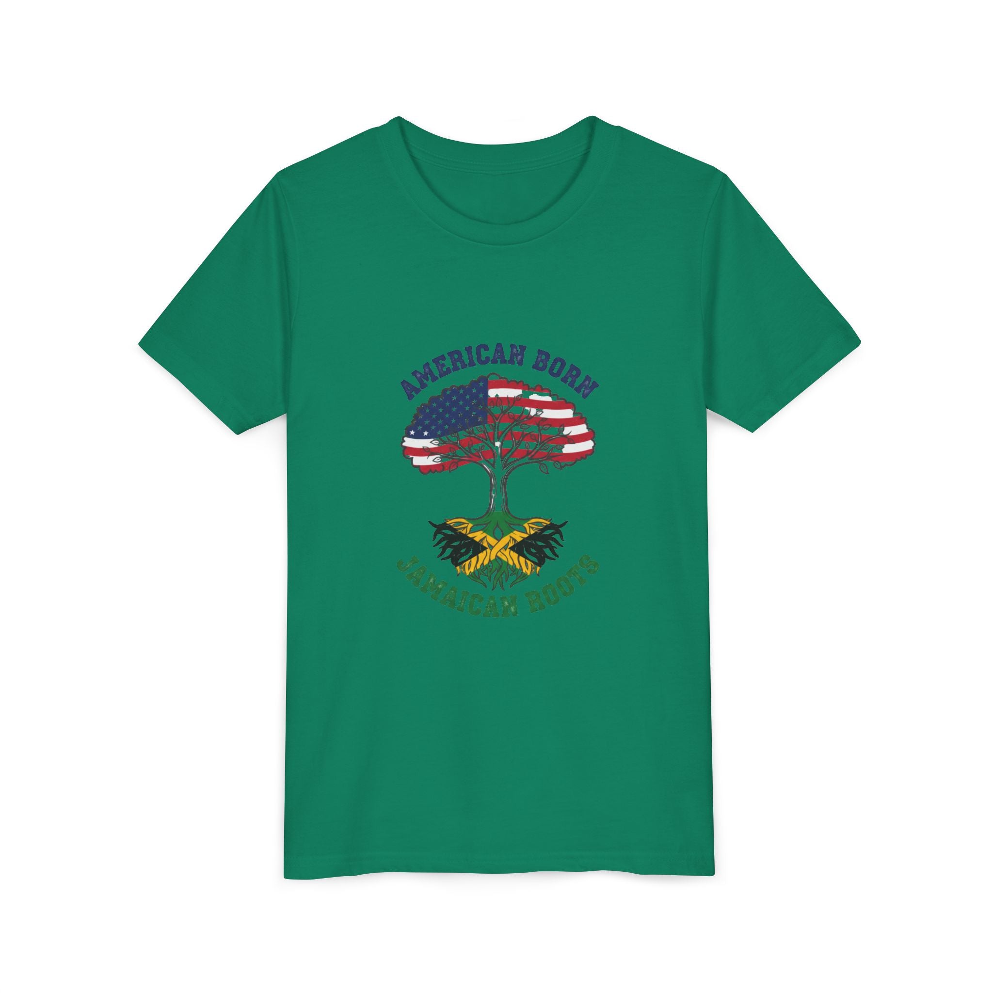Soft, lightweight youth tee that wears like a second skin and carries a story. A sun-warmed afternoon at the family cookout, laughter spilling across the yard and a tiny patriot with roots reaching back to Jamaica — this shirt is that quiet, proud moment made wearable. The design pairs a gently distressed American flag canopy with vibrant Jamaican-rooted colors beneath, creating a bold-yet-approachable look kids will want to wear again and again. The retail fit and crew neckline keep the silhouette modern and easy to layer. Thoughtful details — ribbed collar, shoulder tape, side seams and a tear-away label — mean comfort that lasts through play, school days, and weekend adventures.
