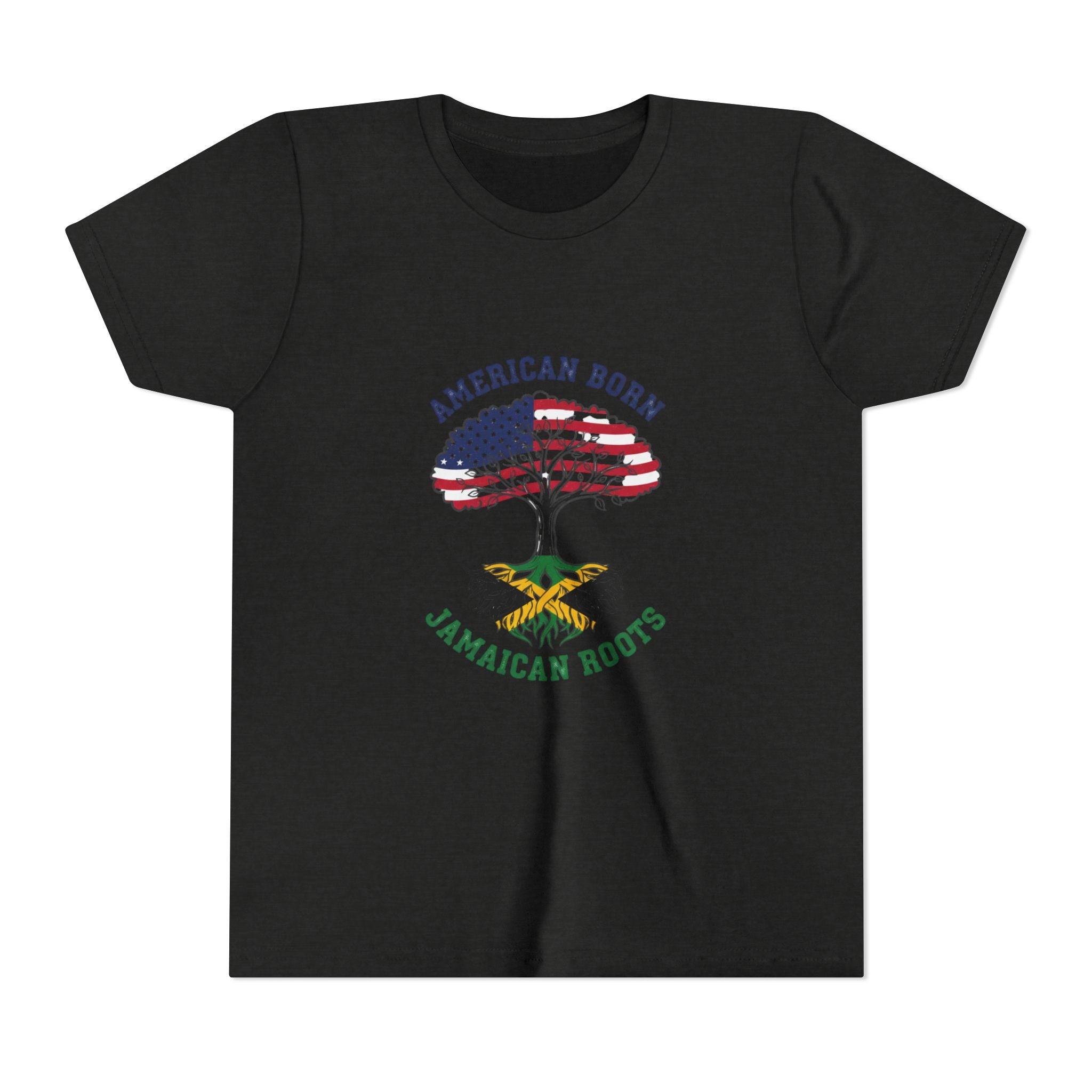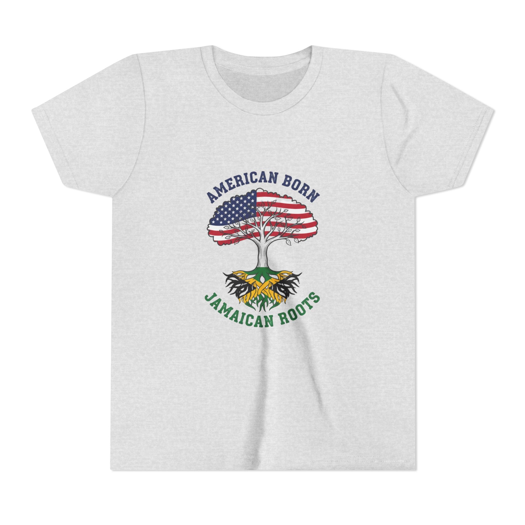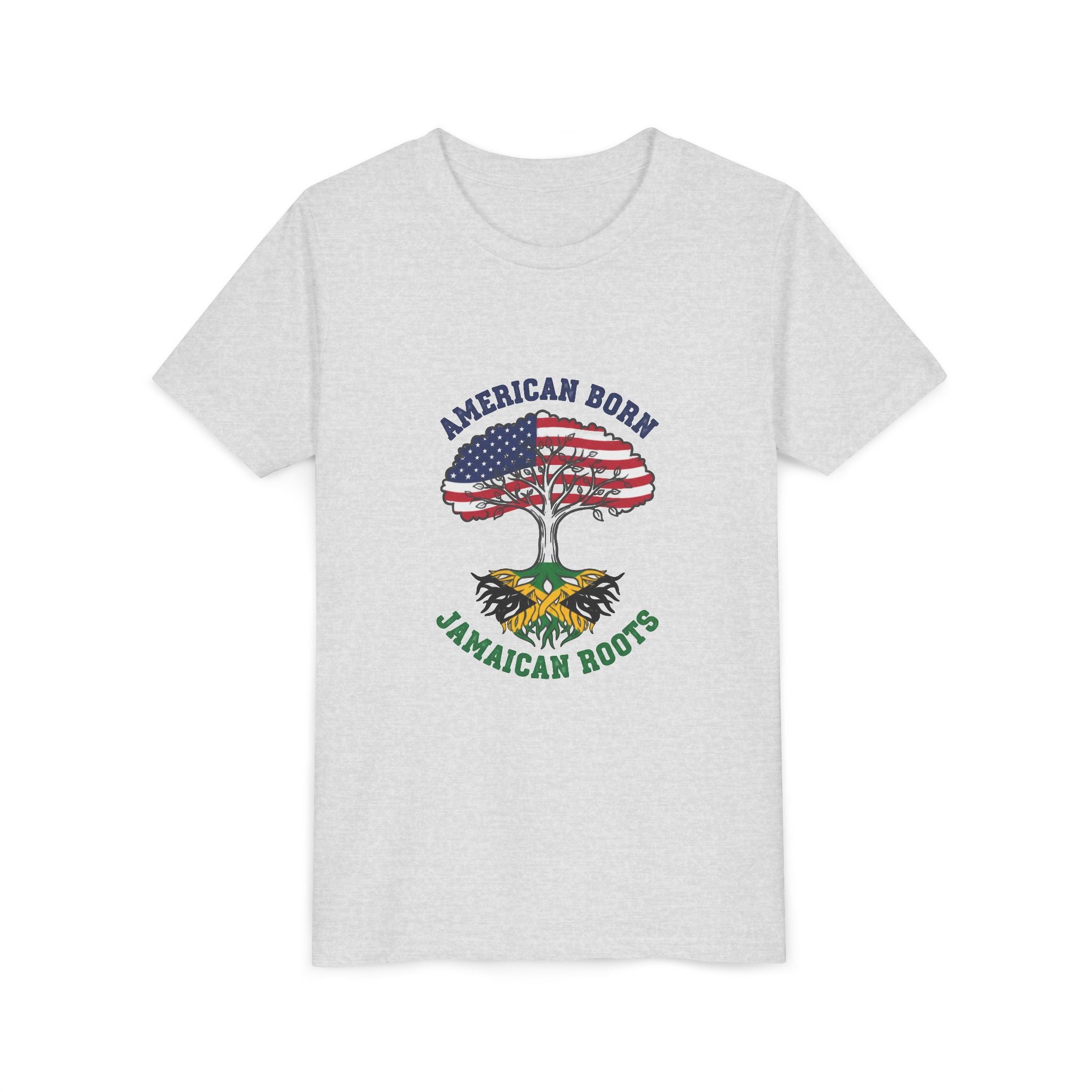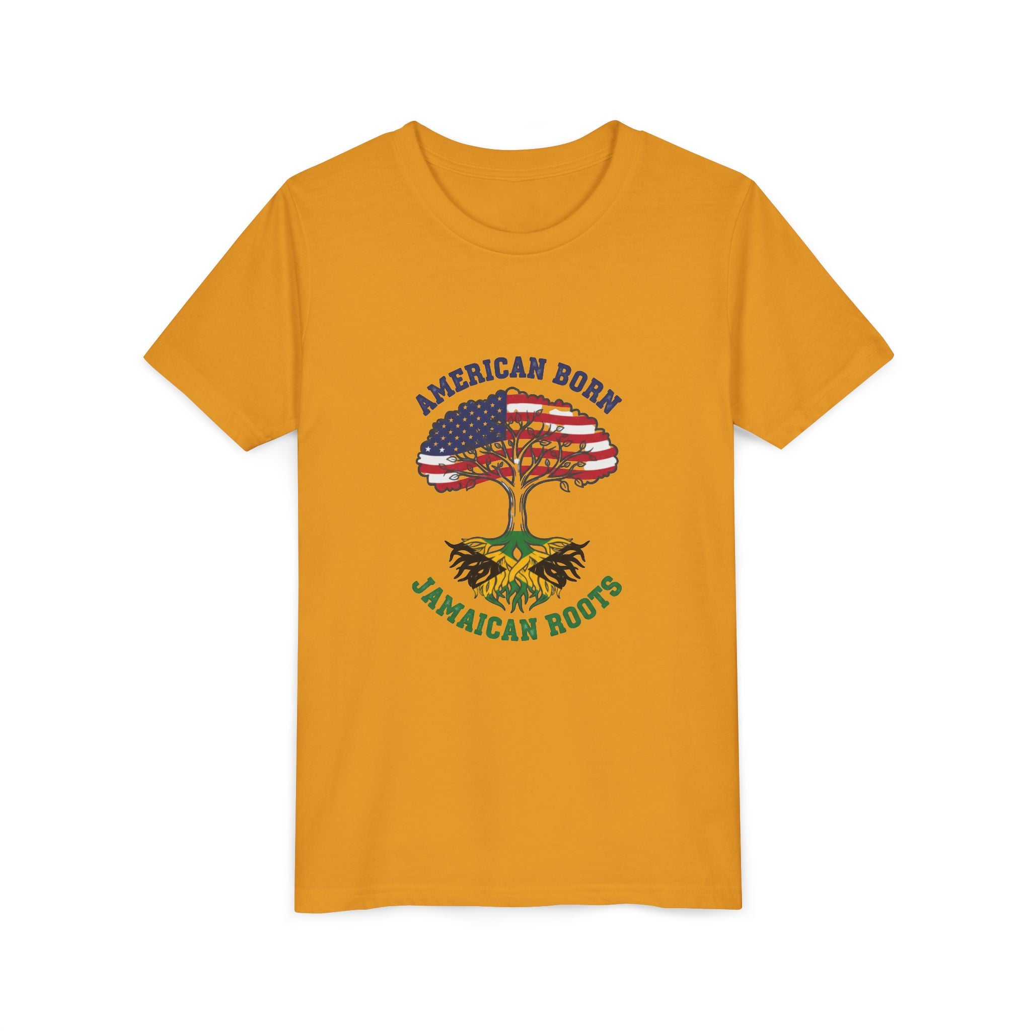 Soft, lightweight youth tee that wears like a second skin and carries a story. A sun-warmed afternoon at the family cookout, laughter spilling across the yard and a tiny patriot with roots reaching back to Jamaica — this shirt is that quiet, proud moment made wearable. The design pairs a gently distressed American flag canopy with vibrant Jamaican-rooted colors beneath, creating a bold-yet-approachable look kids will want to wear again and again. The retail fit and crew neckline keep the silhouette modern and easy to layer. Thoughtful details — ribbed collar, shoulder tape, side seams and a tear-away label — mean comfort that lasts through play, school days, and weekend adventures.
