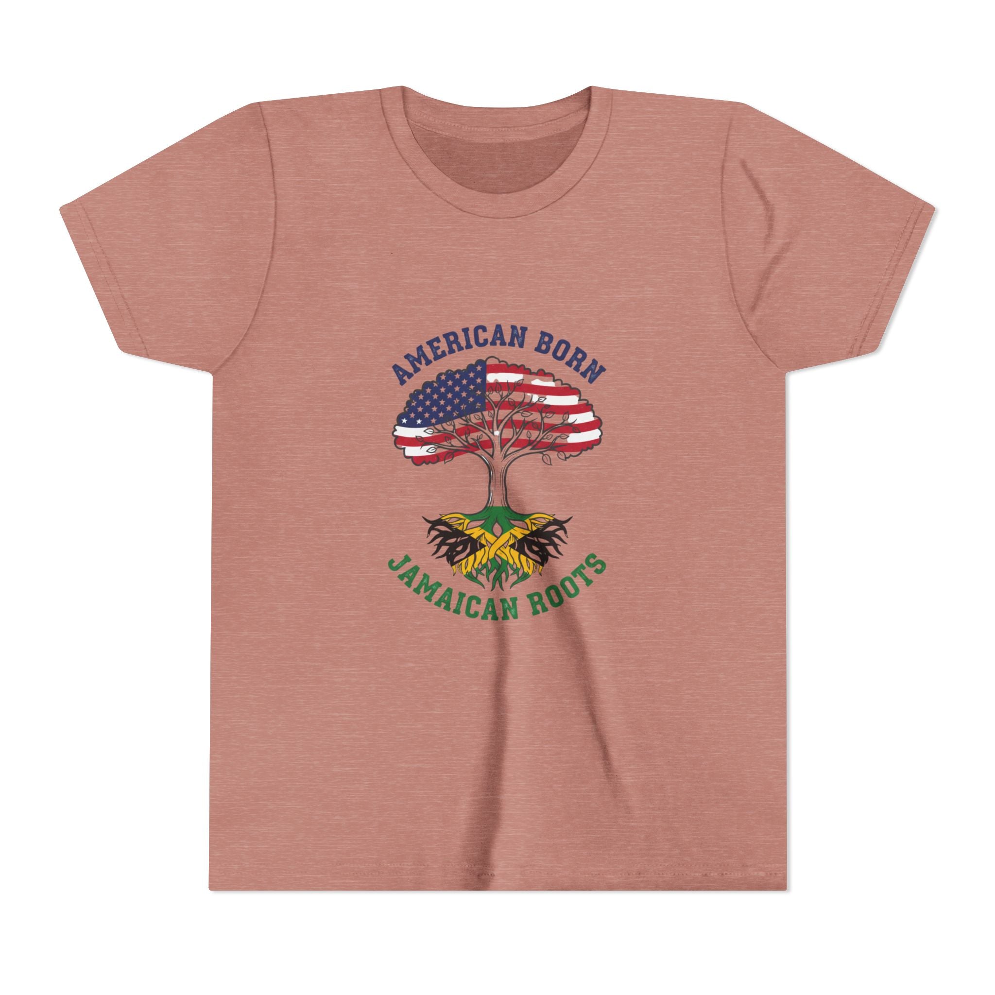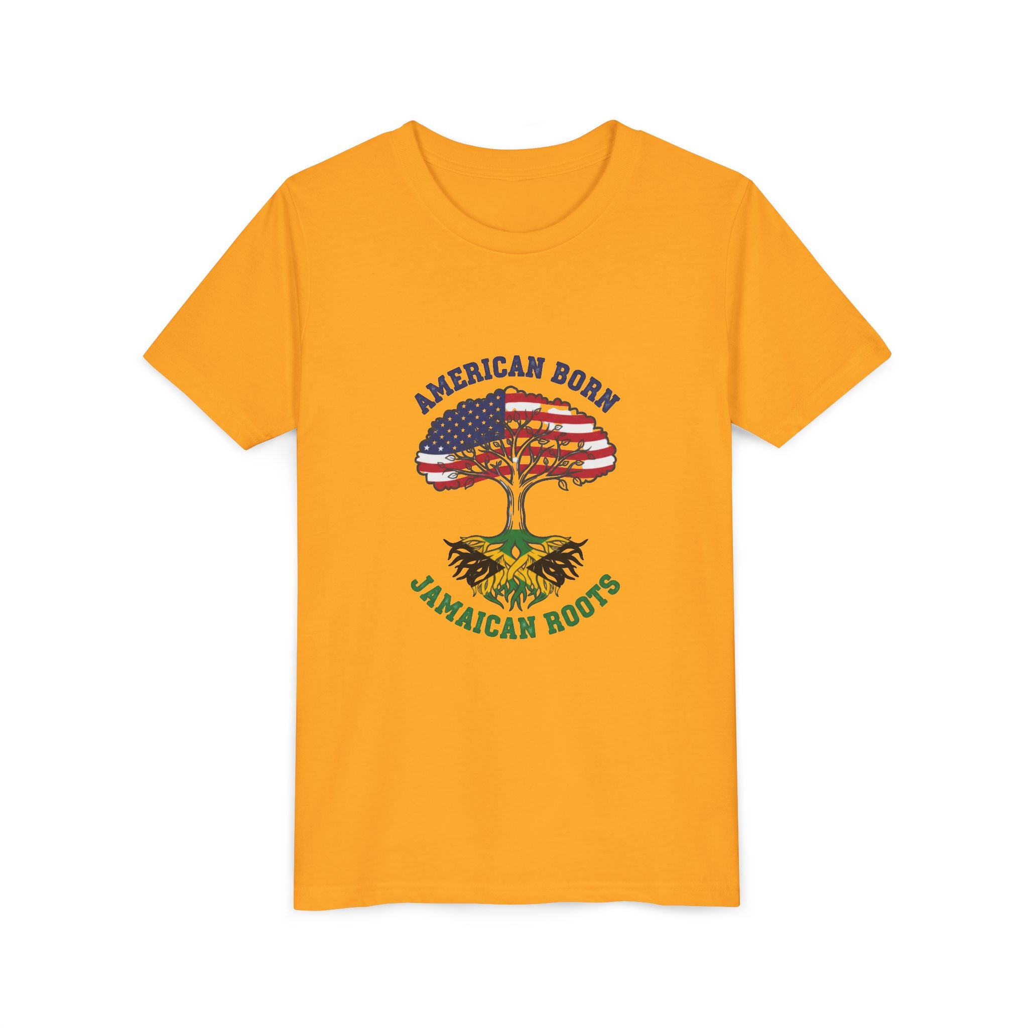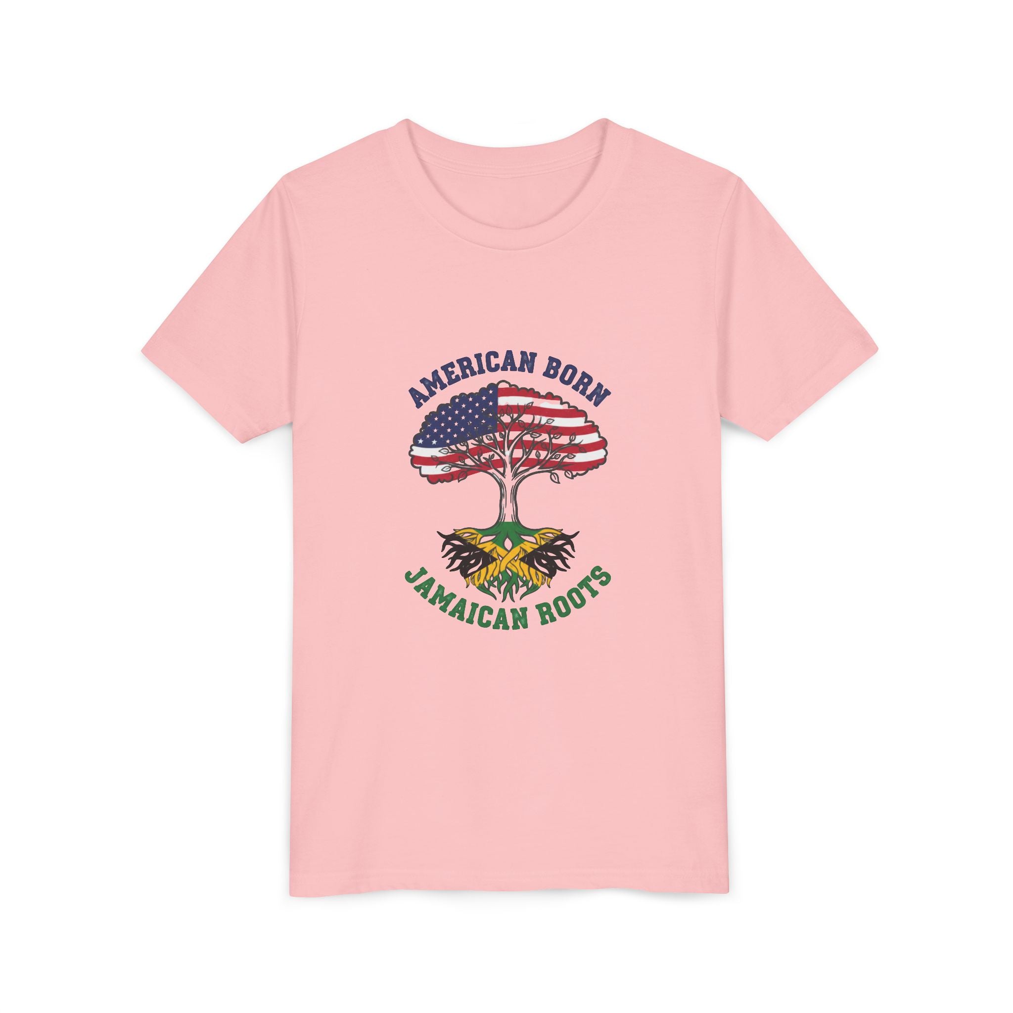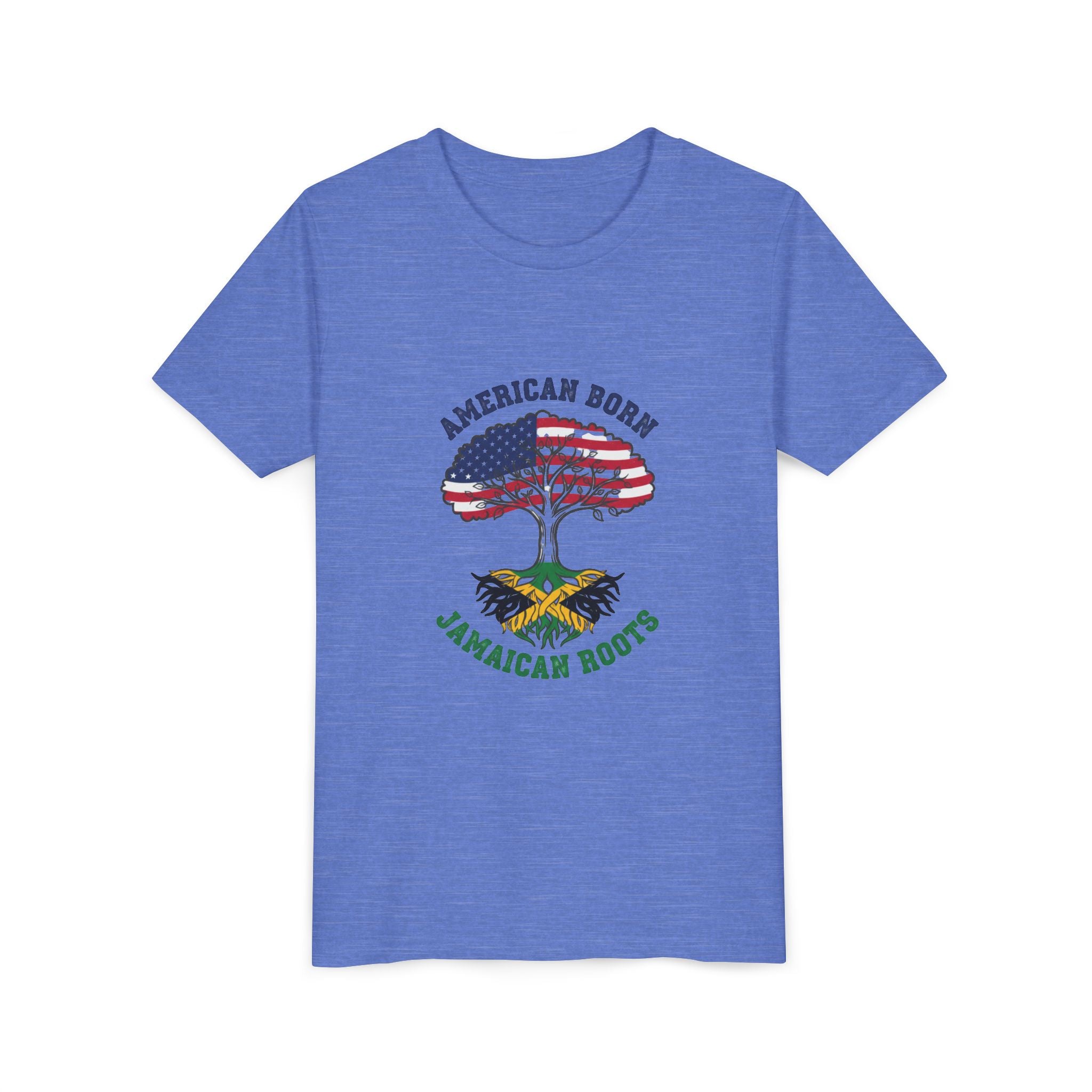 Soft, lightweight youth tee that wears like a second skin and carries a story. A sun-warmed afternoon at the family cookout, laughter spilling across the yard and a tiny patriot with roots reaching back to Jamaica — this shirt is that quiet, proud moment made wearable. The design pairs a gently distressed American flag canopy with vibrant Jamaican-rooted colors beneath, creating a bold-yet-approachable look kids will want to wear again and again. The retail fit and crew neckline keep the silhouette modern and easy to layer. Thoughtful details — ribbed collar, shoulder tape, side seams and a tear-away label — mean comfort that lasts through play, school days, and weekend adventures.